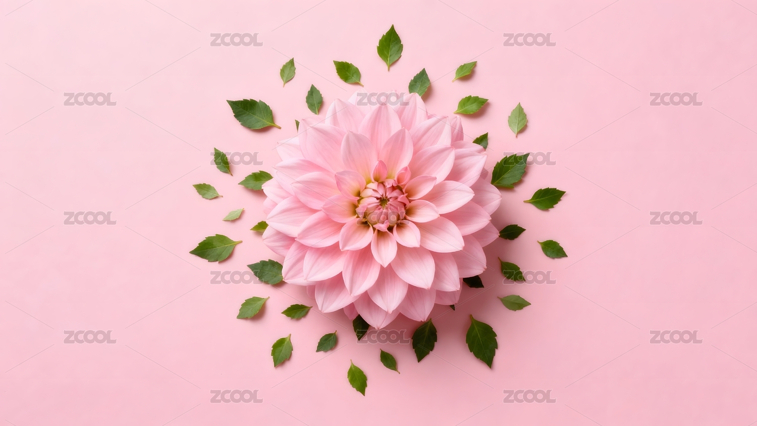 粉色大丽花与绿叶装饰