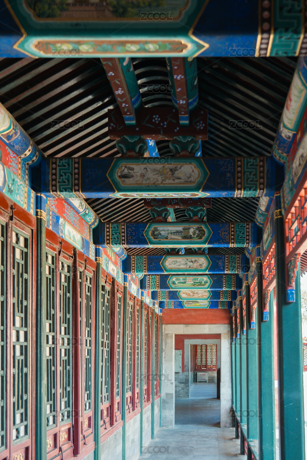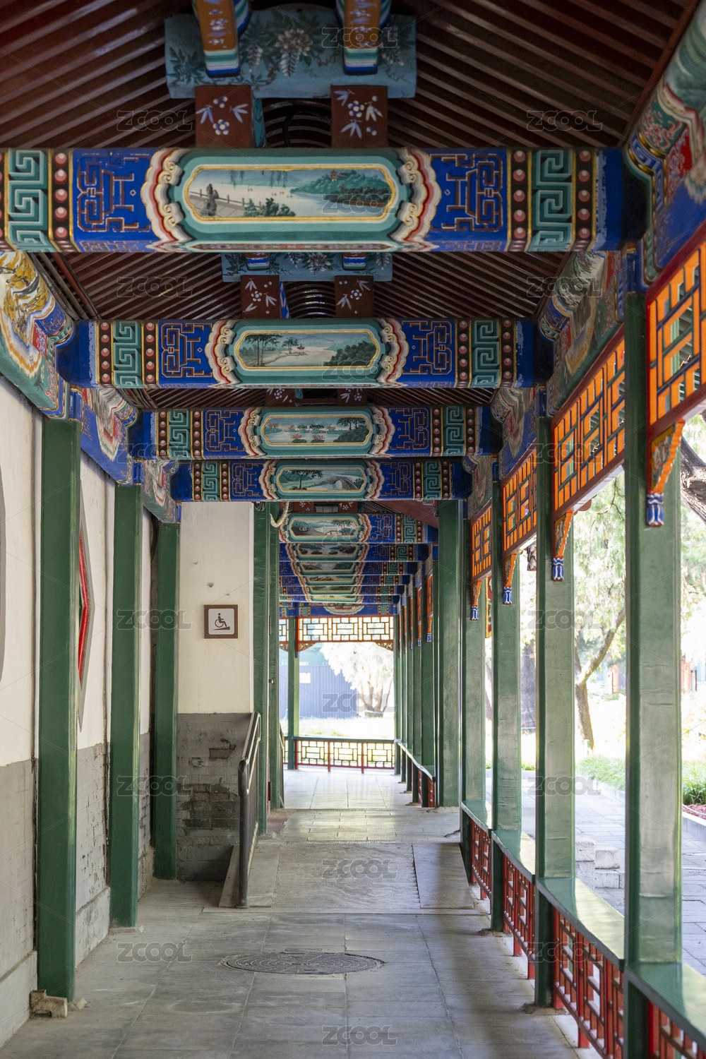 内蒙呼和浩特市昭君博物院内一处装饰精美的五颜六色回廊