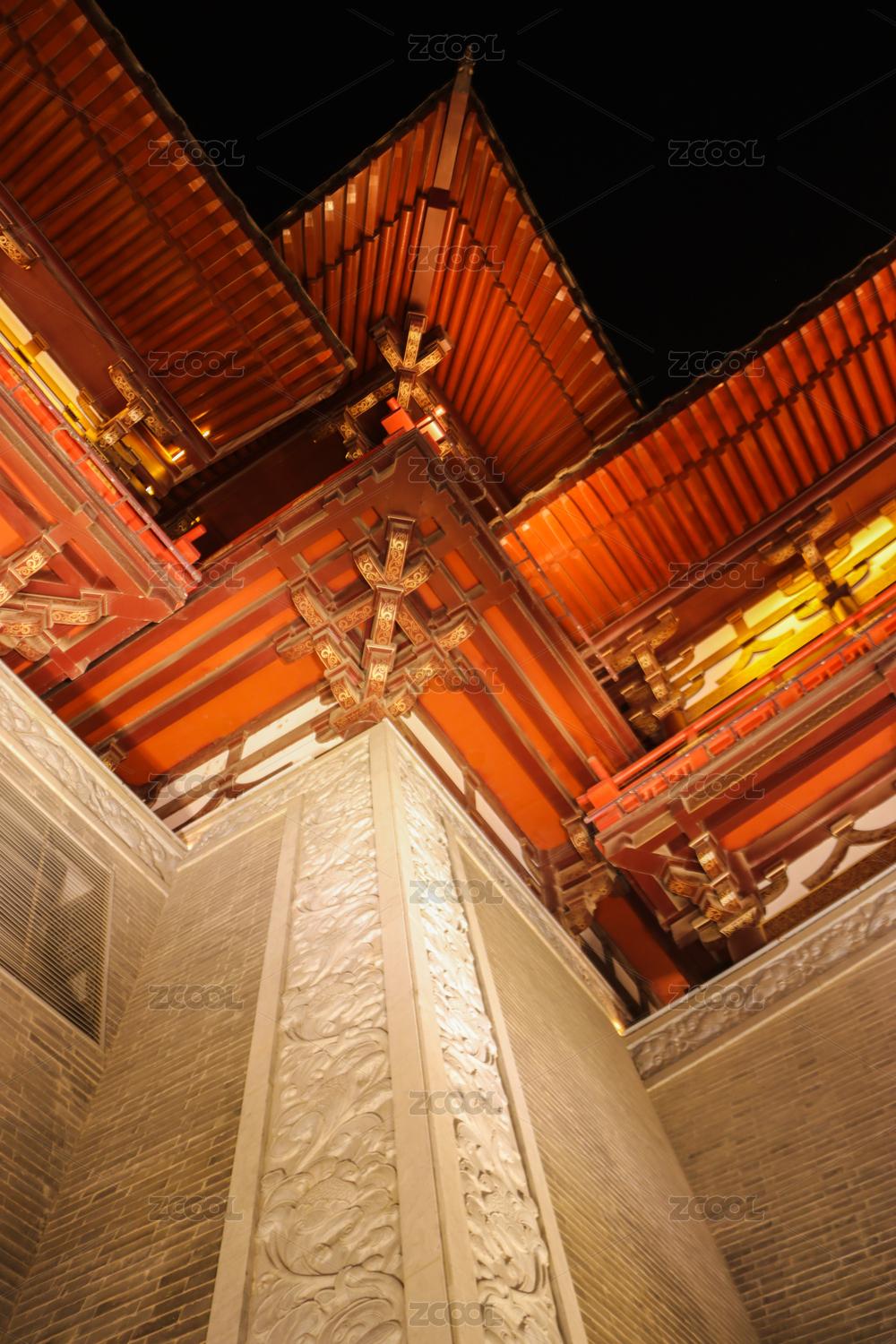洛阳应天门古建筑飞檐夜景局部特写