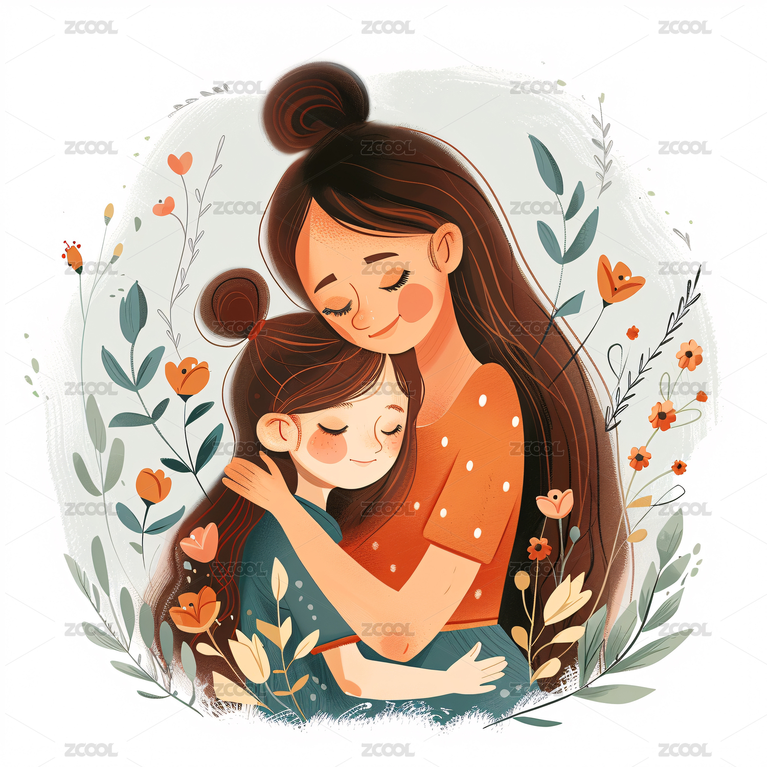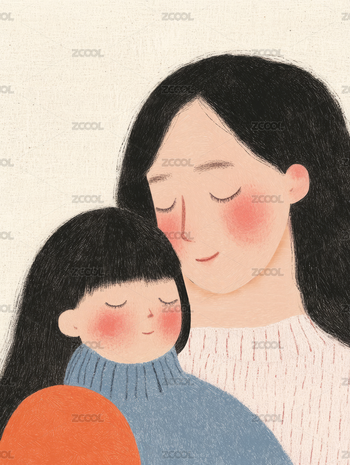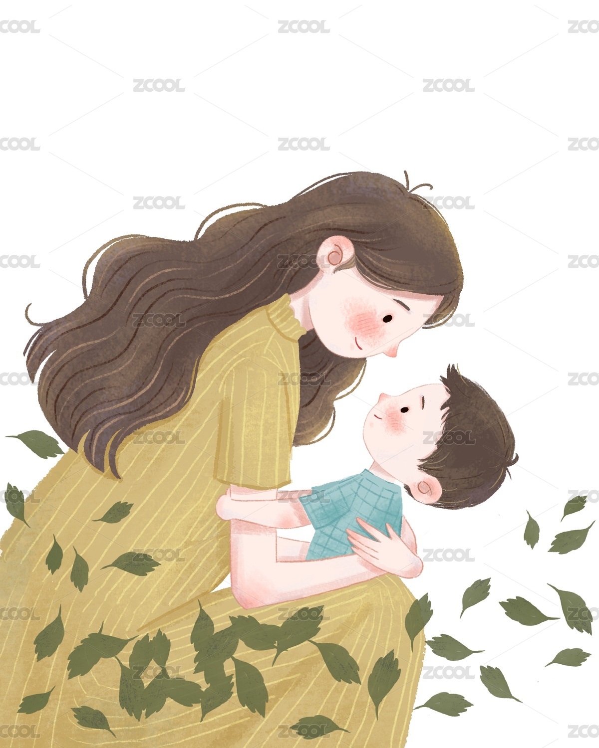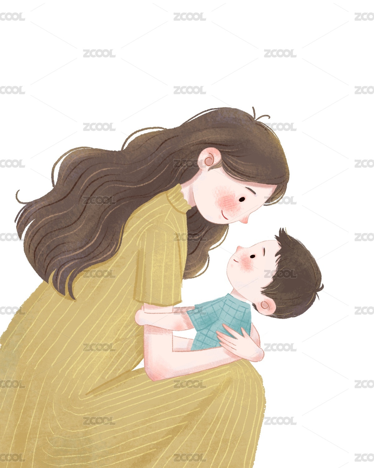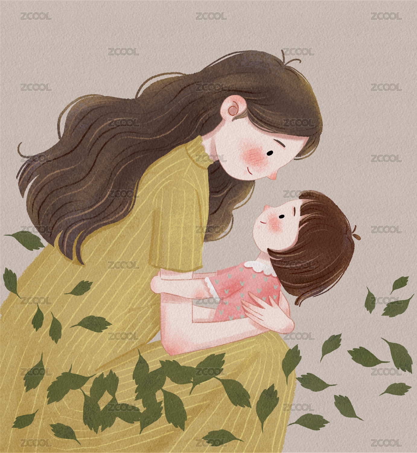 节日,母女,母子,插画,手绘,亲情