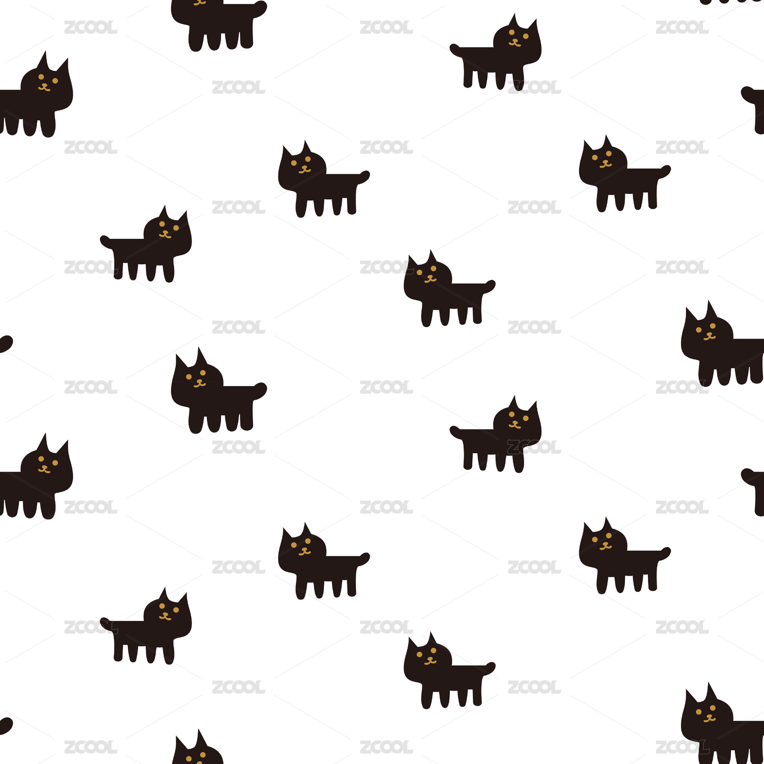 可爱卡通动物黑猫儿童印花无缝背景