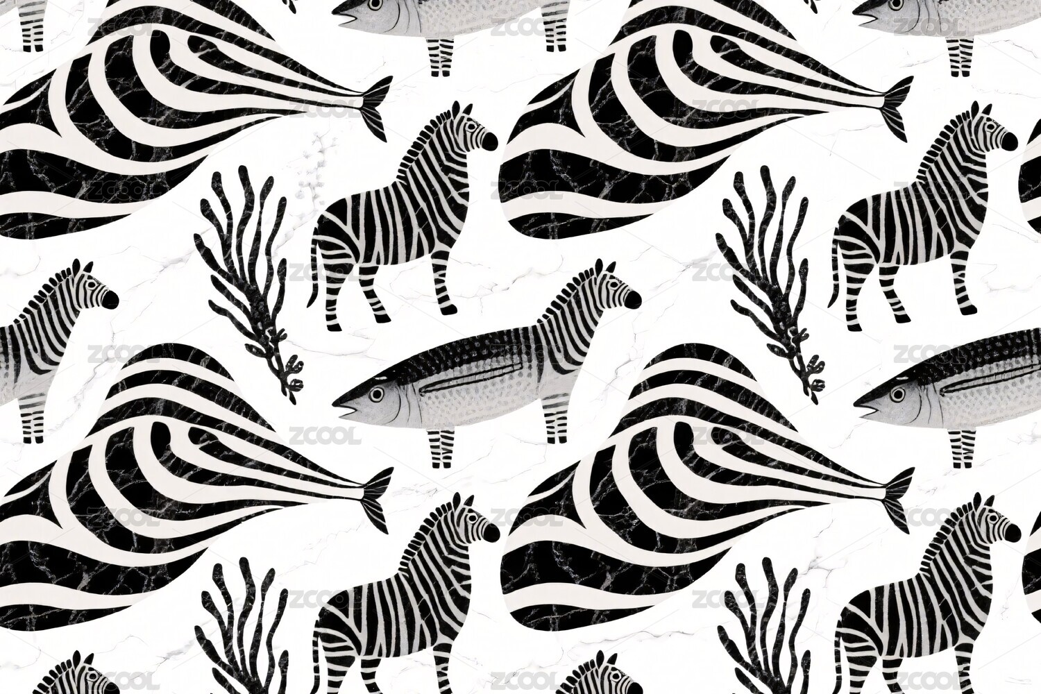 黑白斑马鱼图案插画