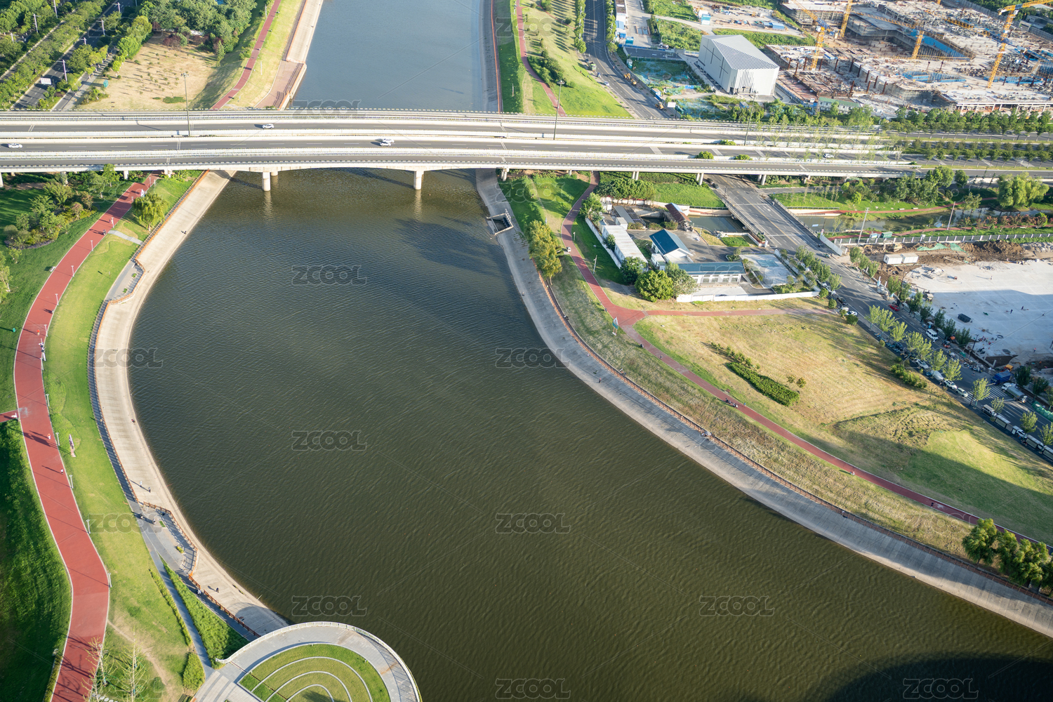 湿地公园,河畔,路,风光,俯拍,水域,环境,蓝天
