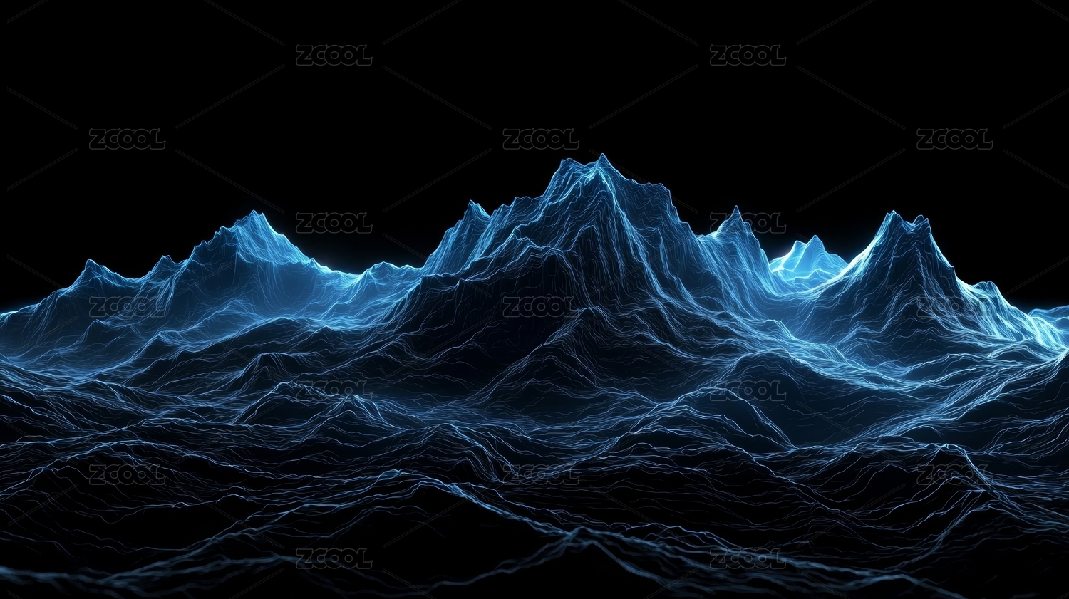 虚拟三维网格山脉,科技感未来