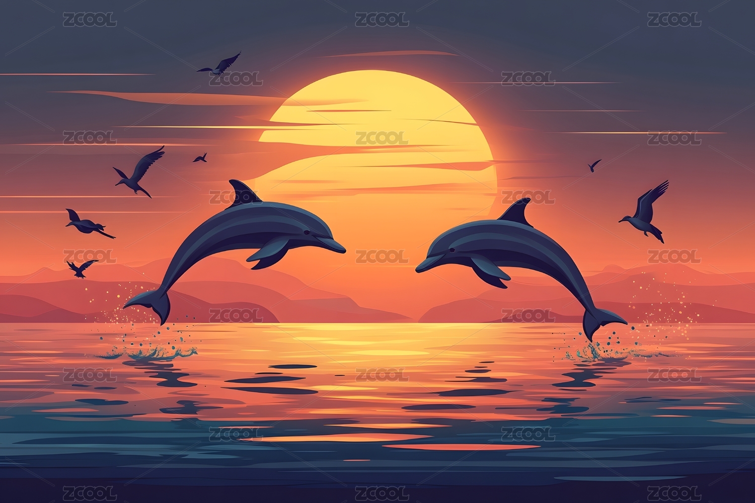 动物,游泳,插画,鸟类,天空,户外,海洋生命,野生动物,海豚,无人