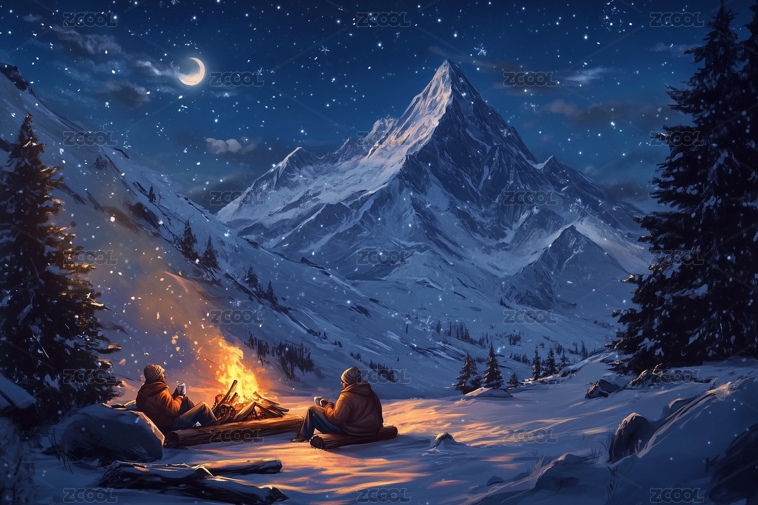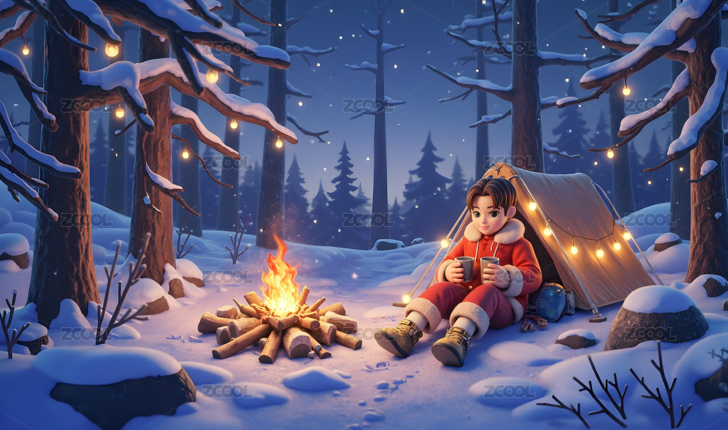 冬季,露营,冬天,奇幻,篝火,帐篷,野外,郊外,寒冷,夜晚