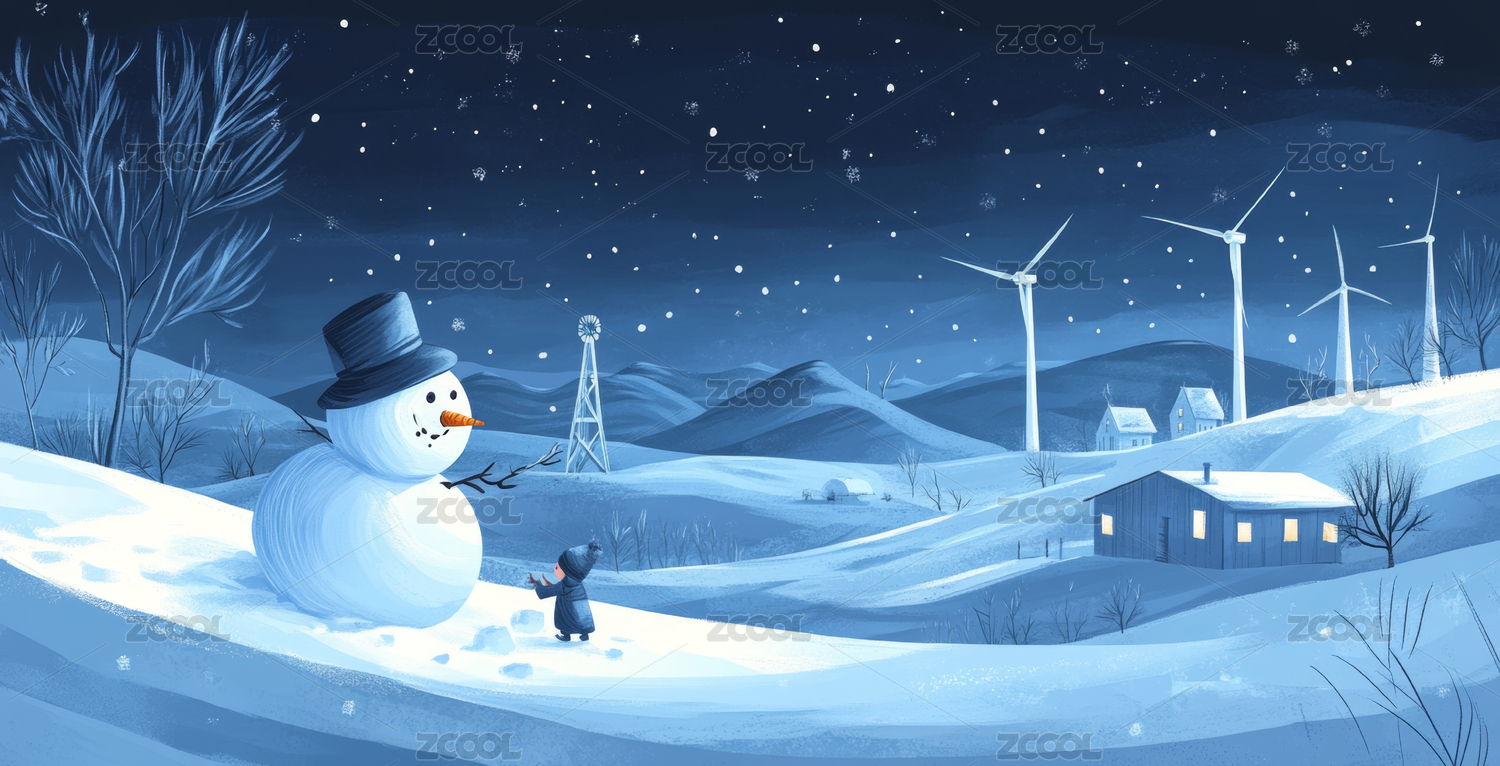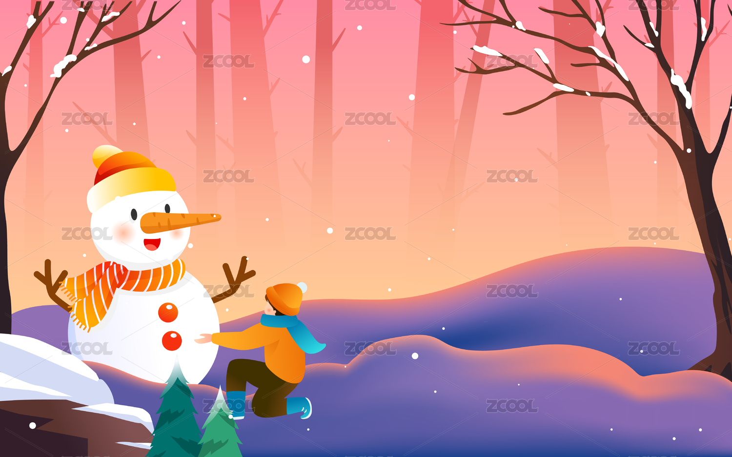 小寒大寒节气冬季一家人户外活动堆雪人插画