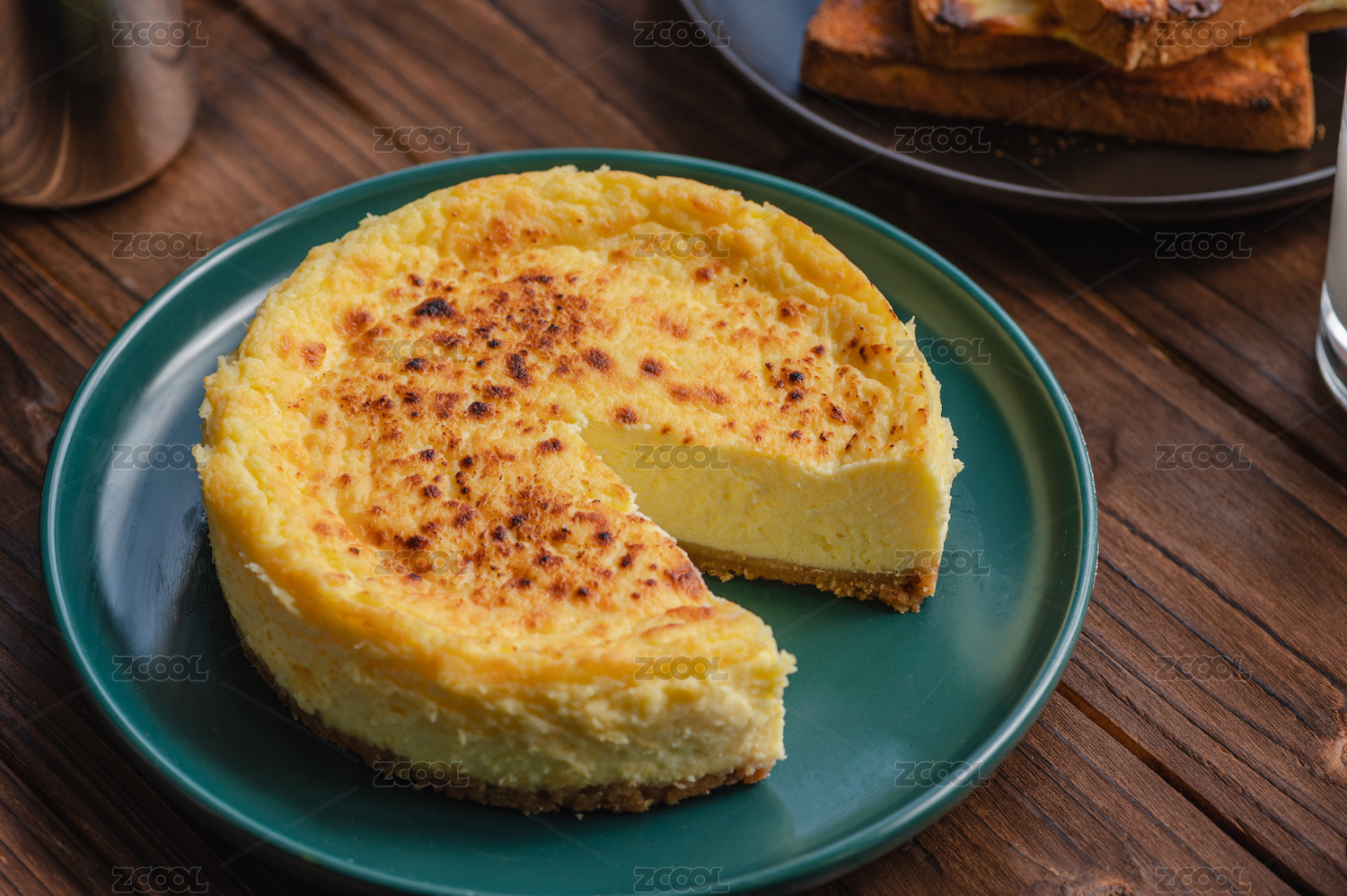 木桌上的早餐重芝士蛋糕