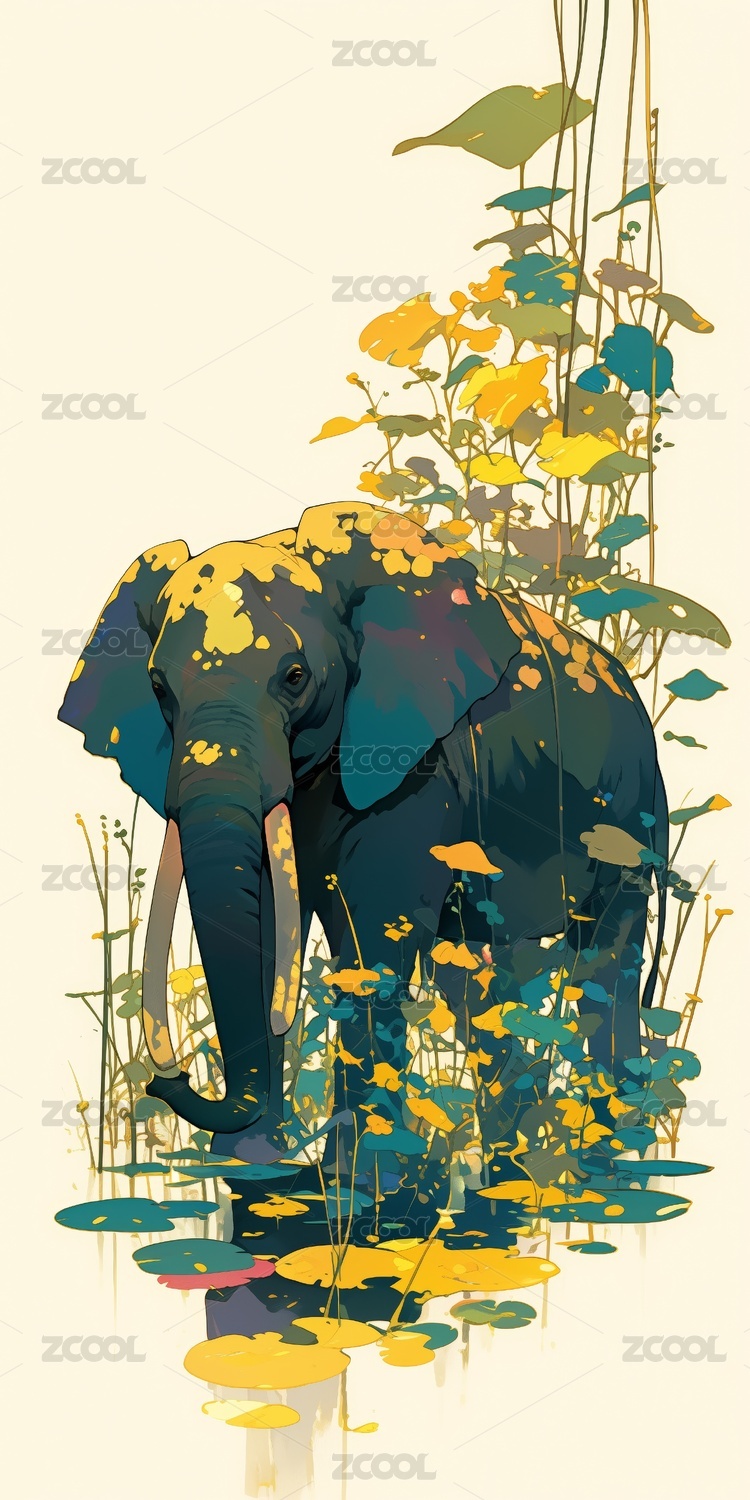 大象,动物,野生动物,森林,热带雨林,绿色,亚洲象,装饰画,创意画,大自然