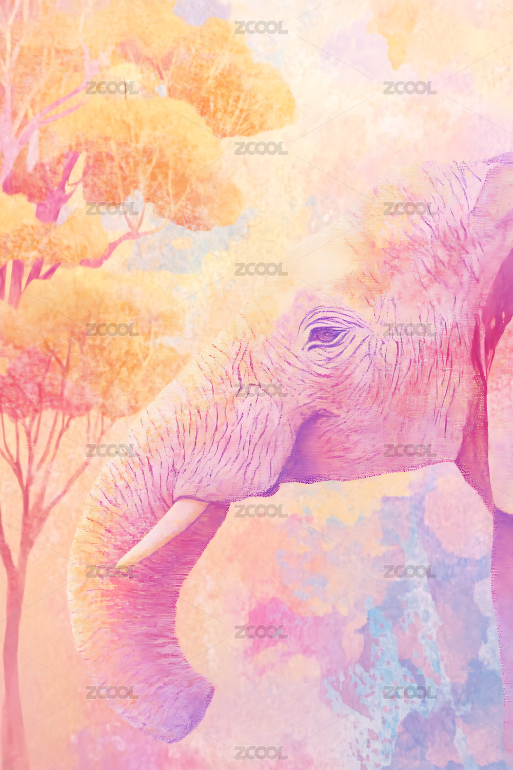 奇幻森林人物与蓝象场景插画艺术装饰画素材