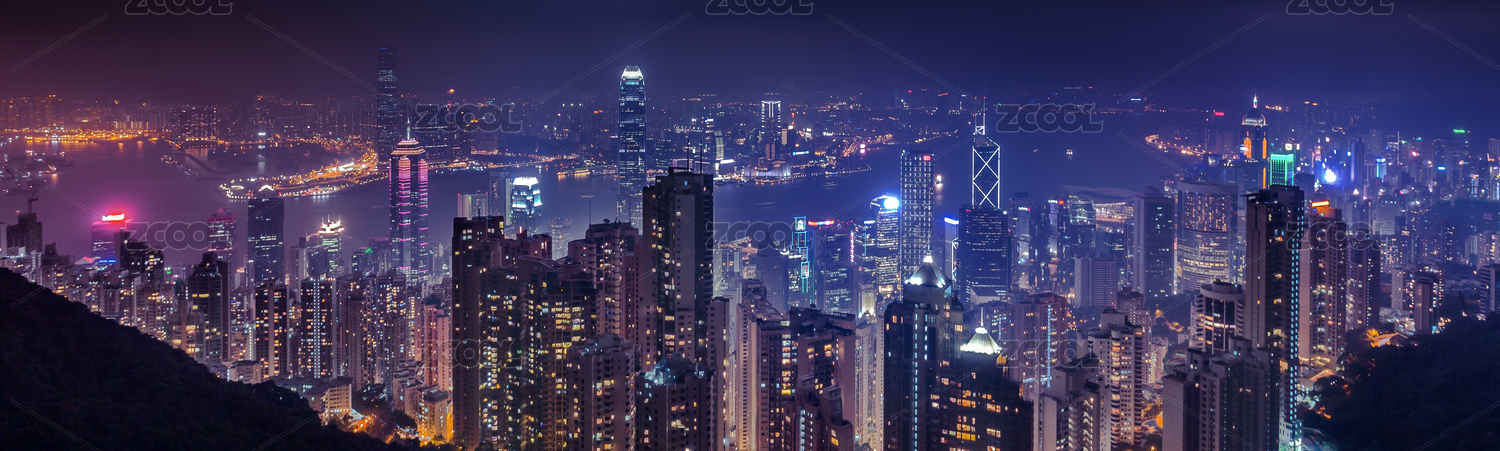 中国香港太平山俯瞰维多利亚港城市繁华夜景