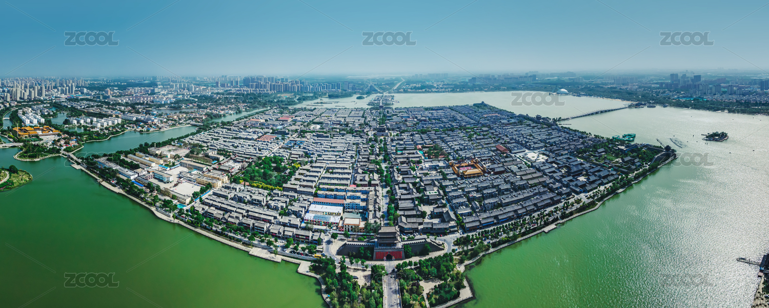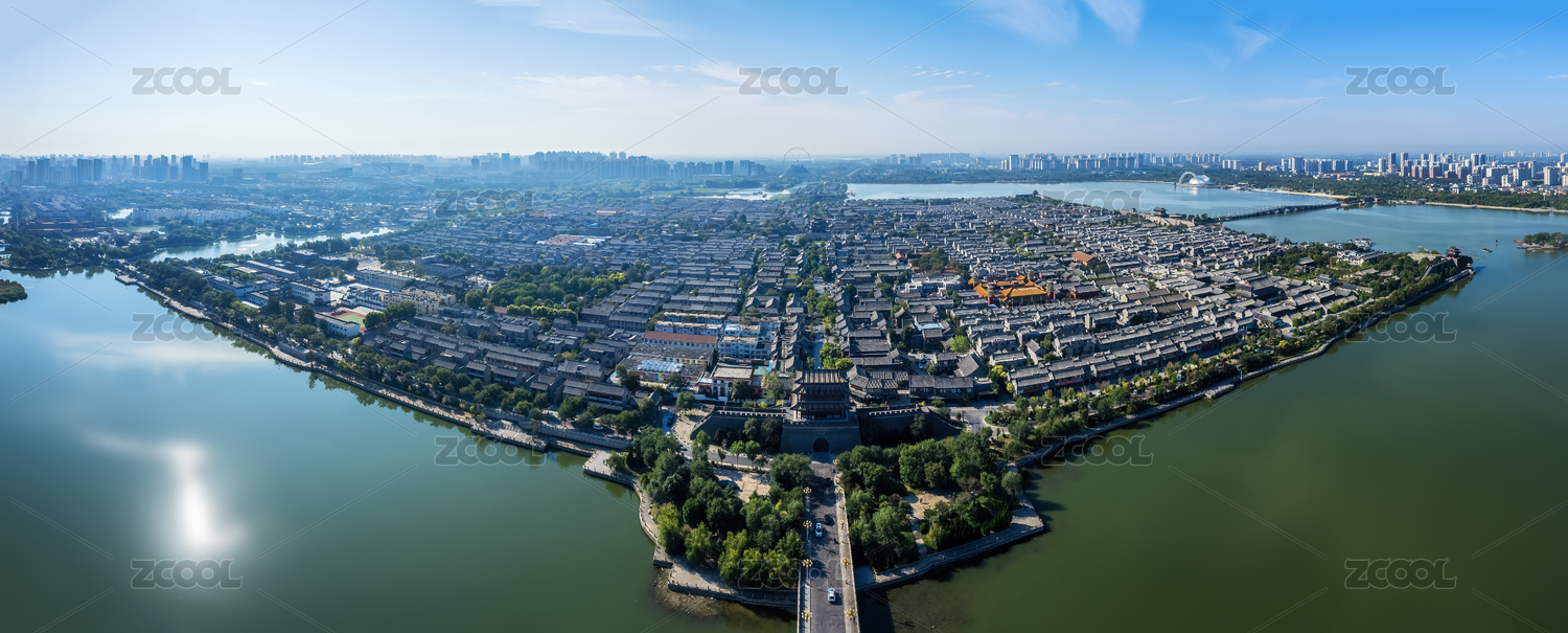 中国山东省聊城市东昌古城水上古城航拍
