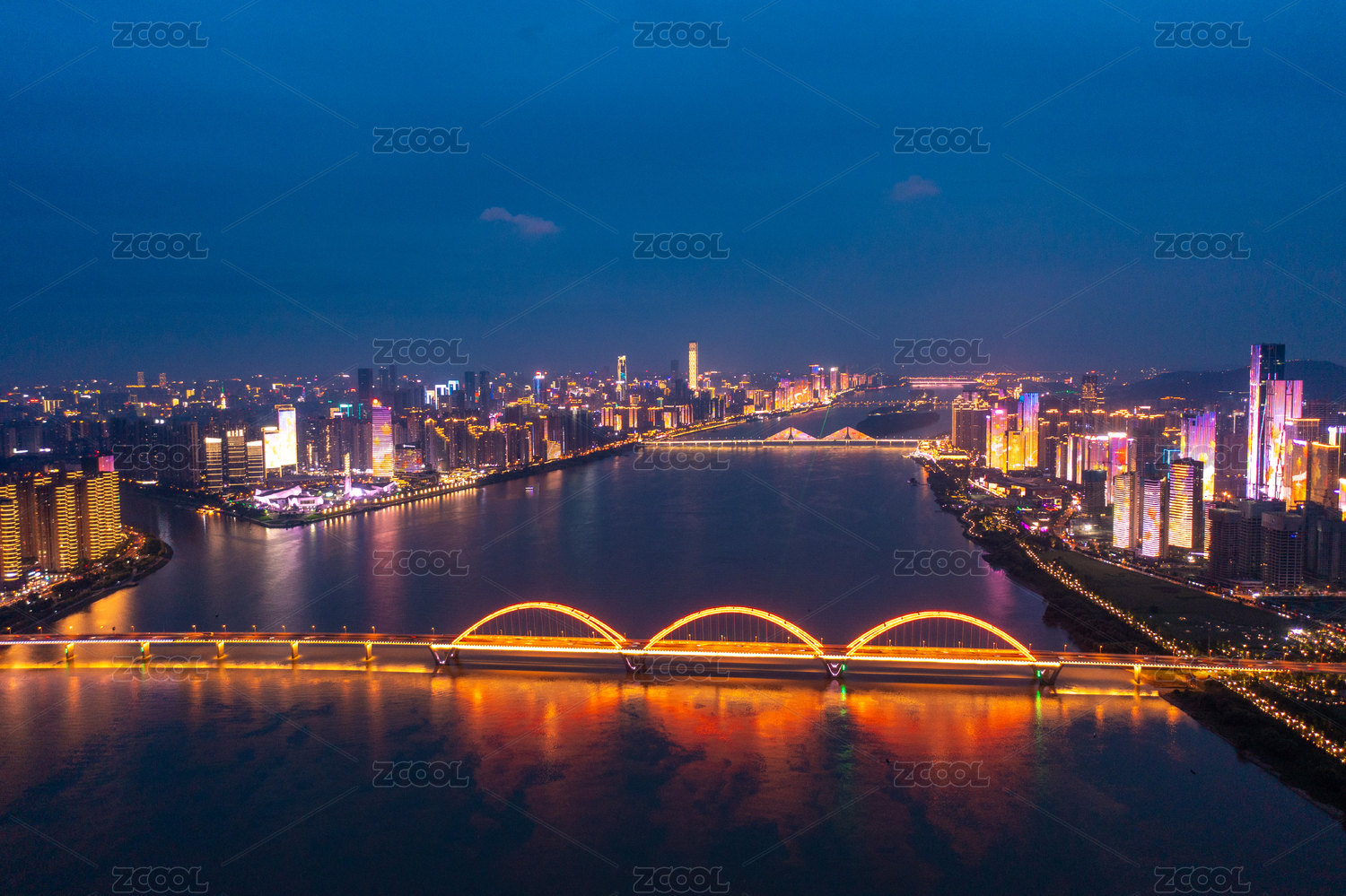 航拍,长沙风光,城市夜景,长沙CBD,长沙金融中心,湖南省,摩天大楼,赣江两岸,浏阳河,北辰三角洲