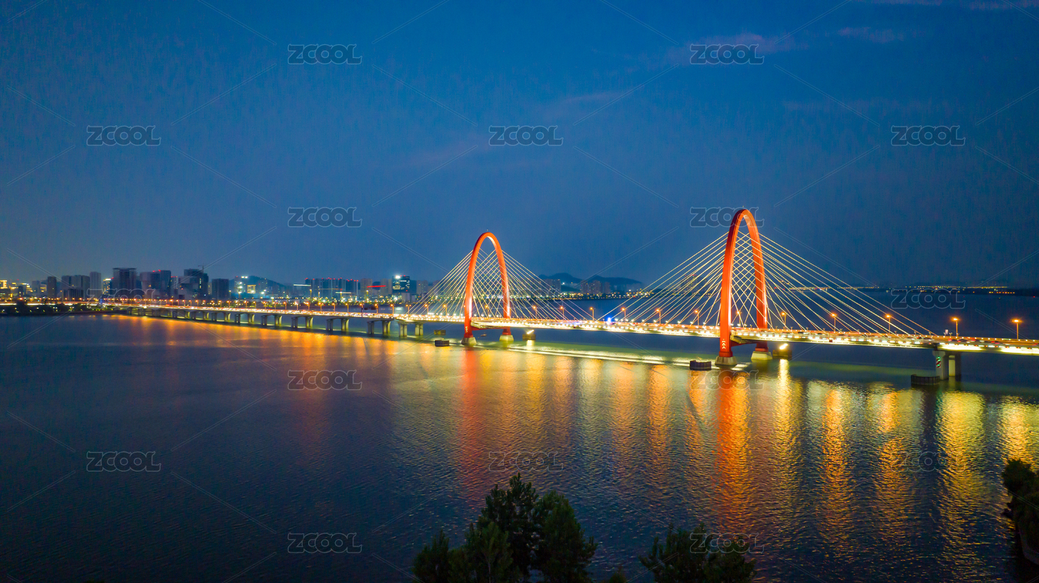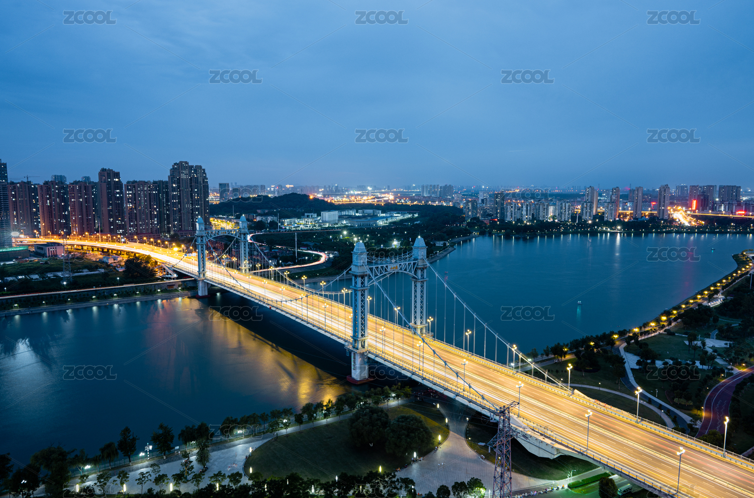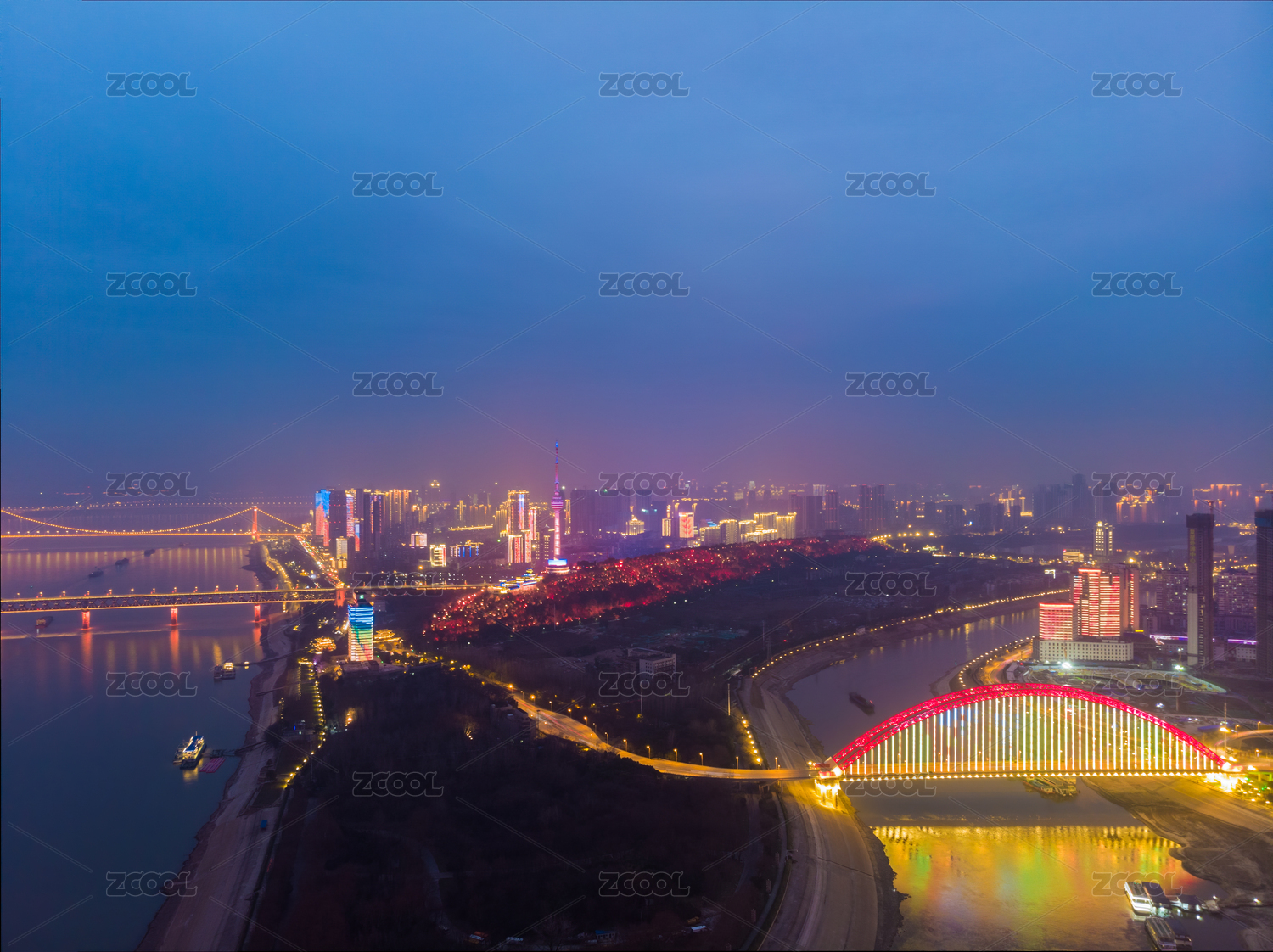 中国湖南省长沙市橘子洲湘江大桥夜景航拍
