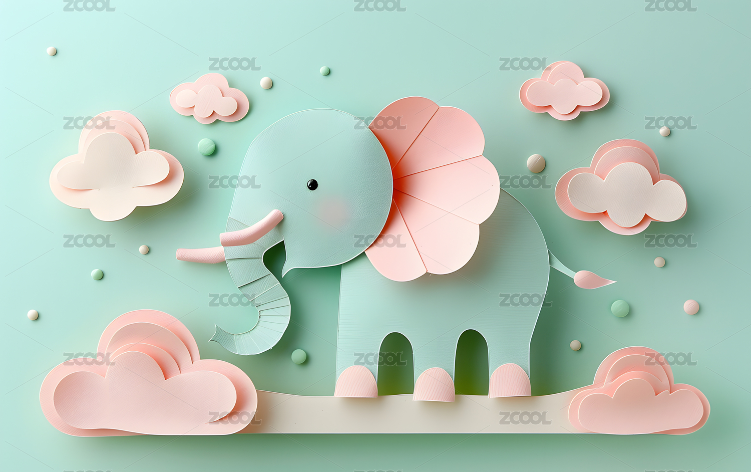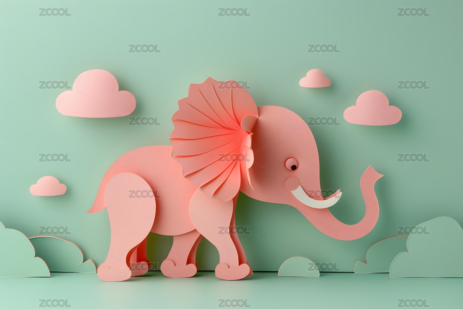 剪纸风格一只可爱的大象
