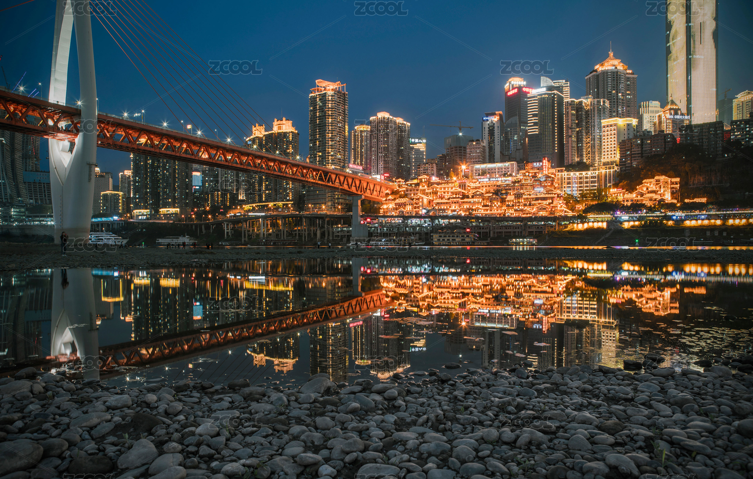 重庆千厮门大桥、洪崖洞夜景