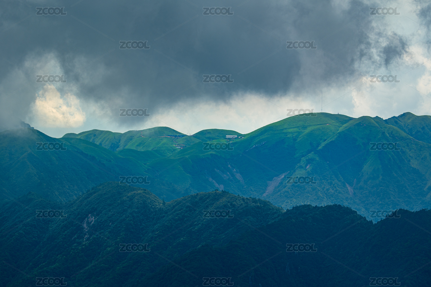 武功山羊狮慕景区云雾缭绕的翠绿山峦