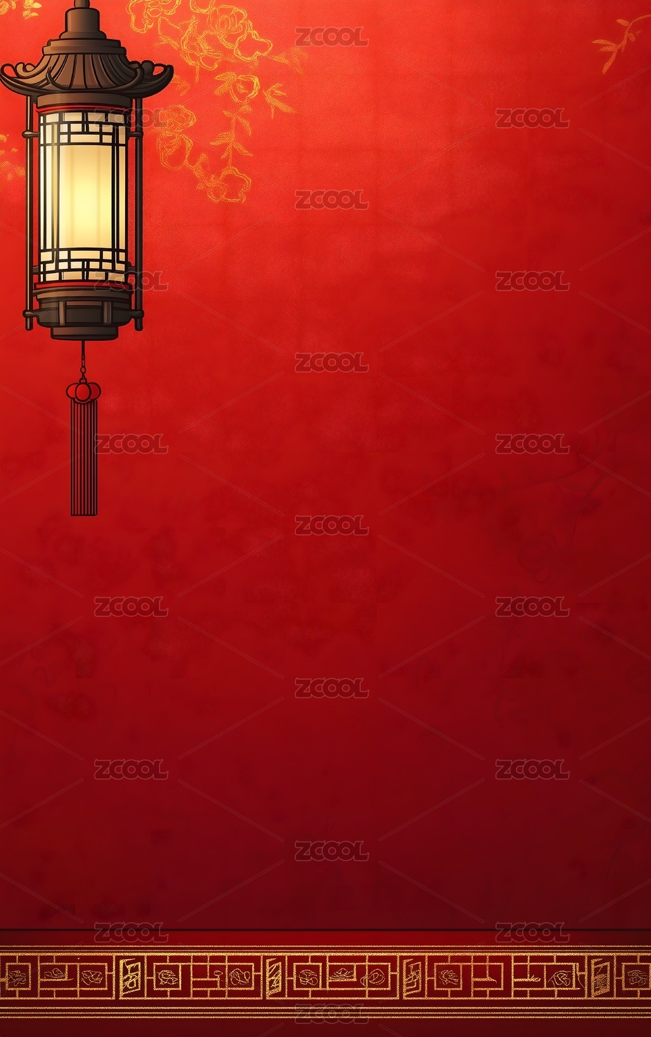 春节新年元宵节国潮插画中式边框一串红灯笼