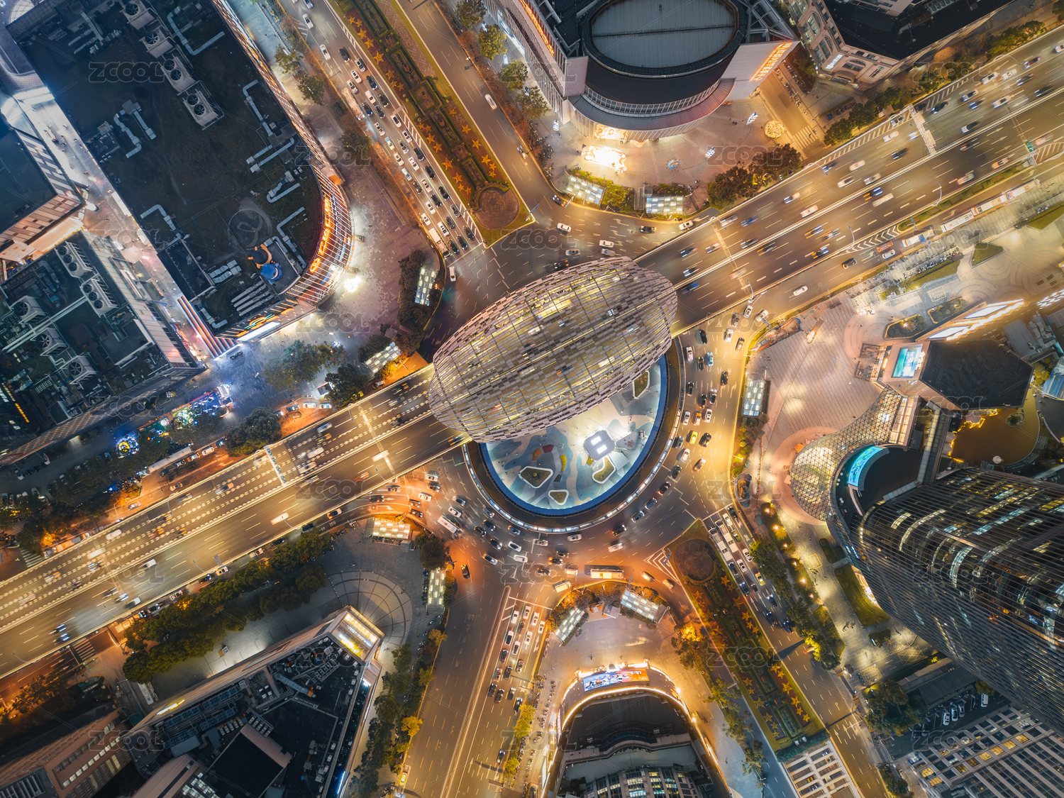 上海杨浦区五角场立交桥转盘商圈夜景车流航