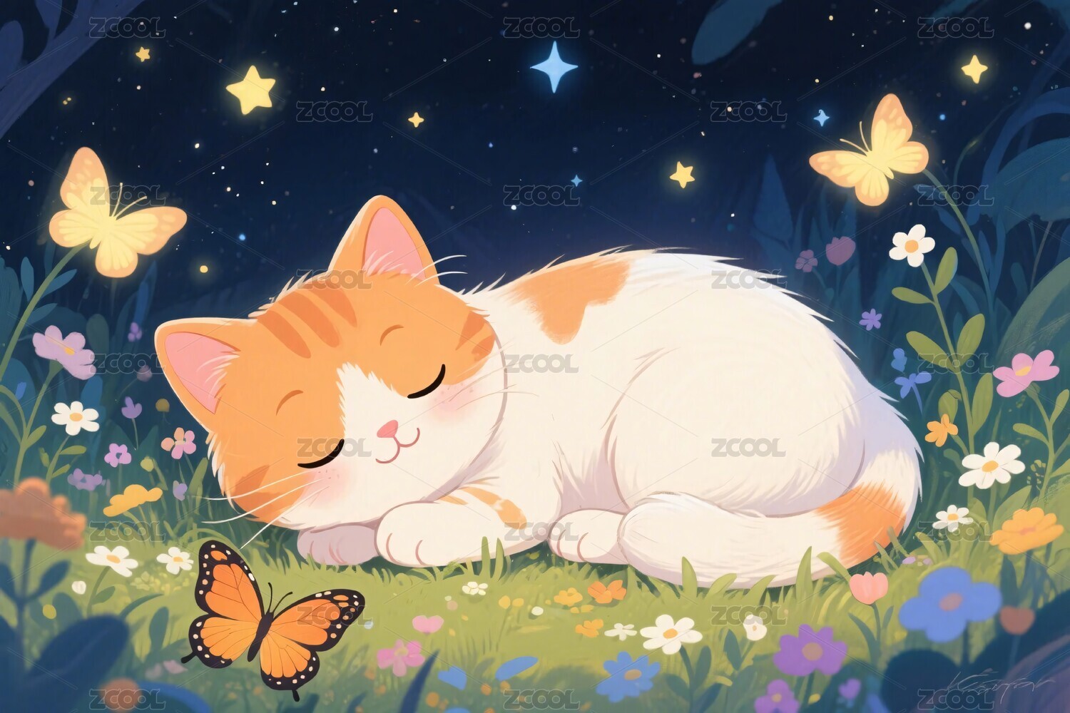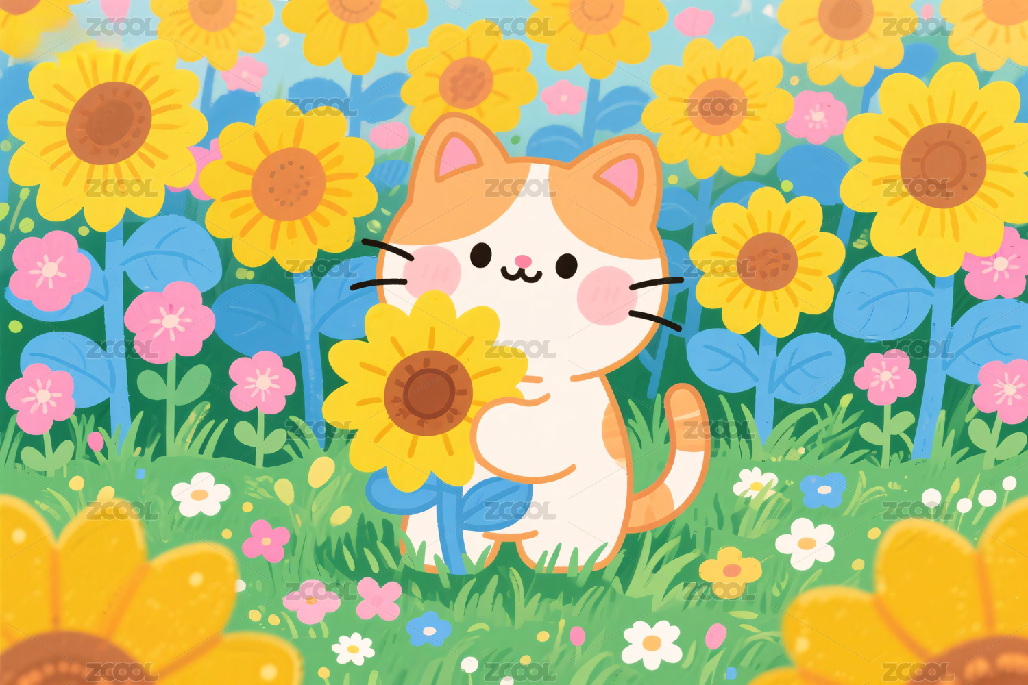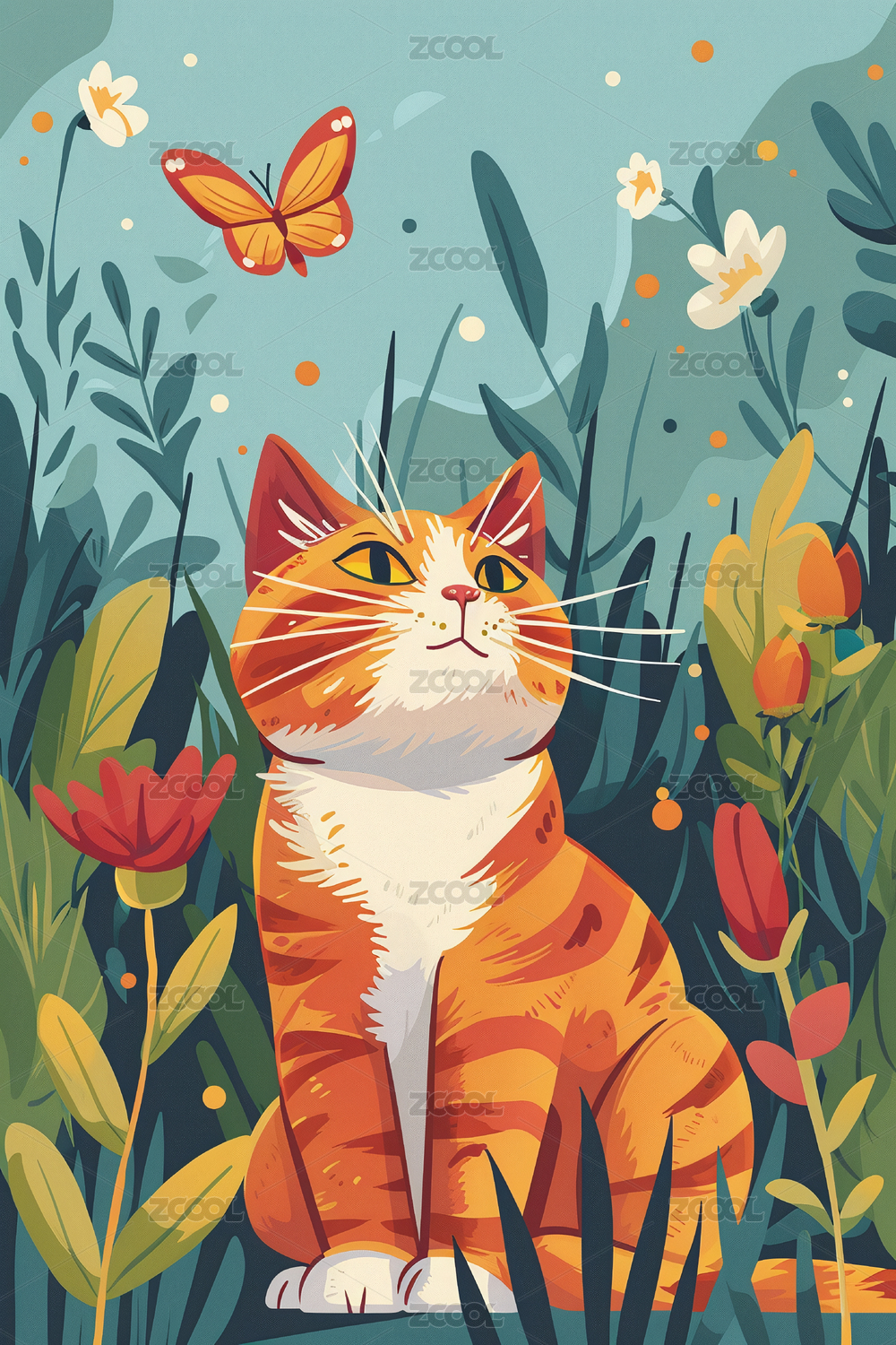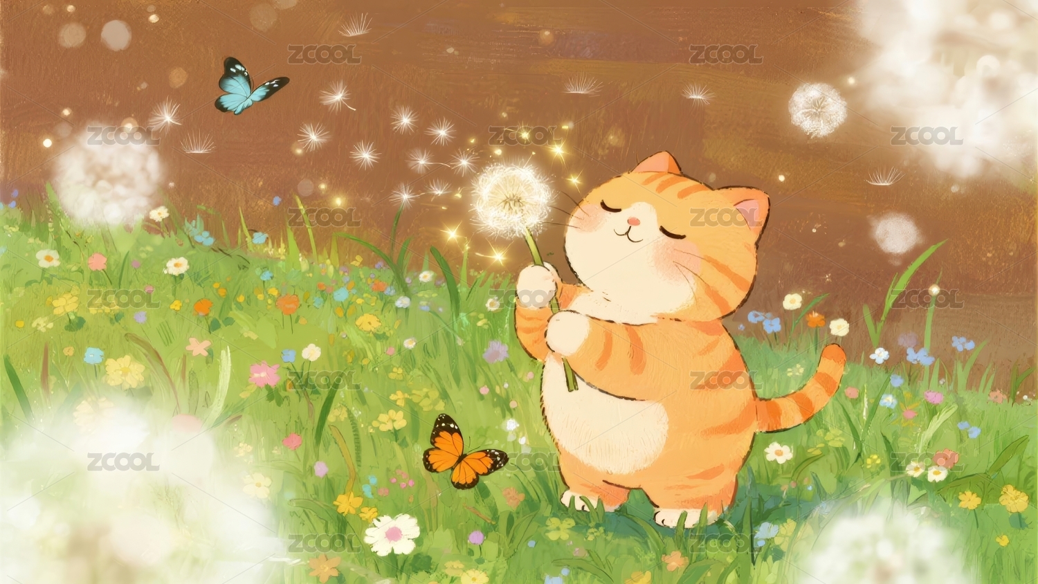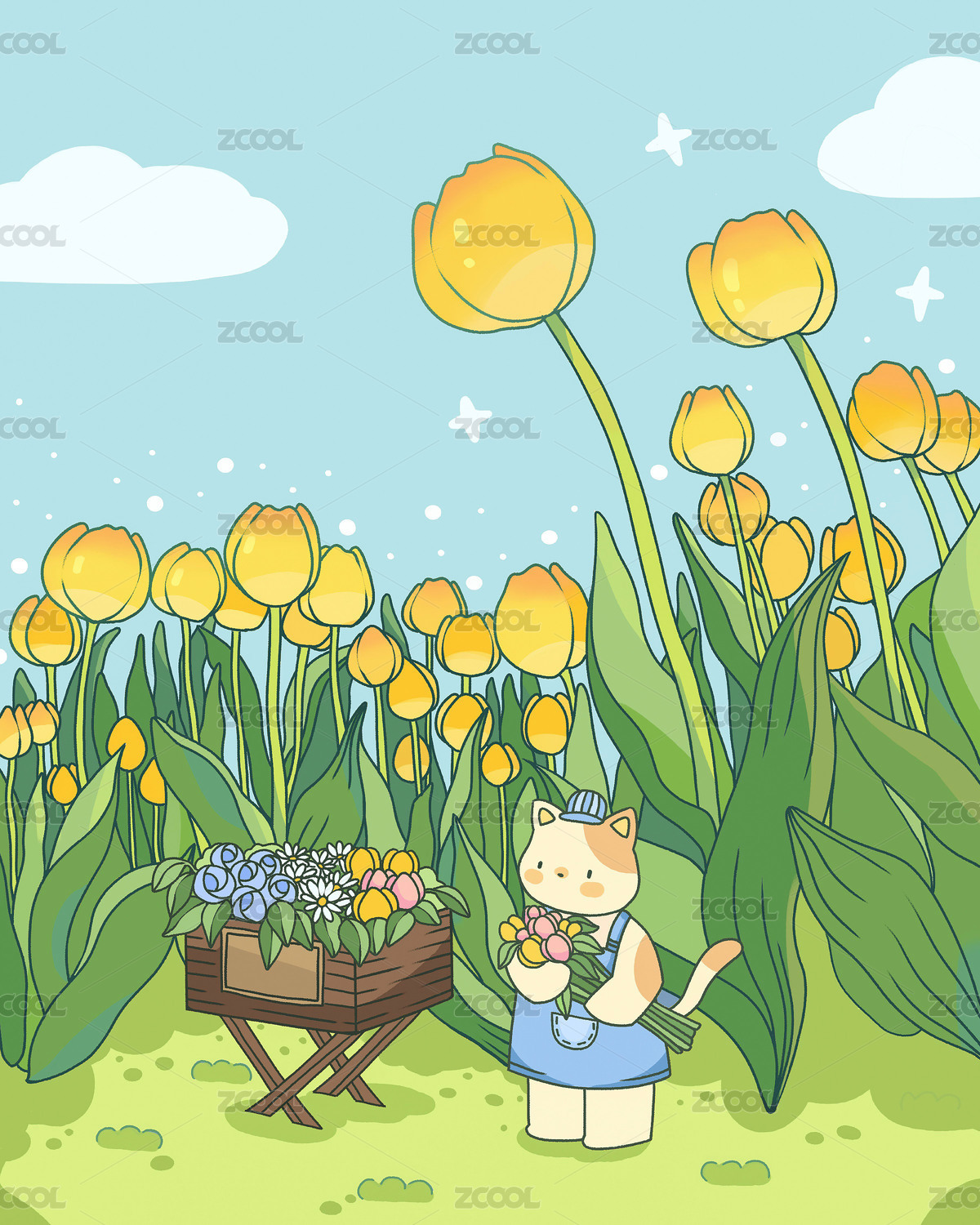 铃兰,动物,可爱,儿童插画,花卉,猫咪,治愈,小清新
