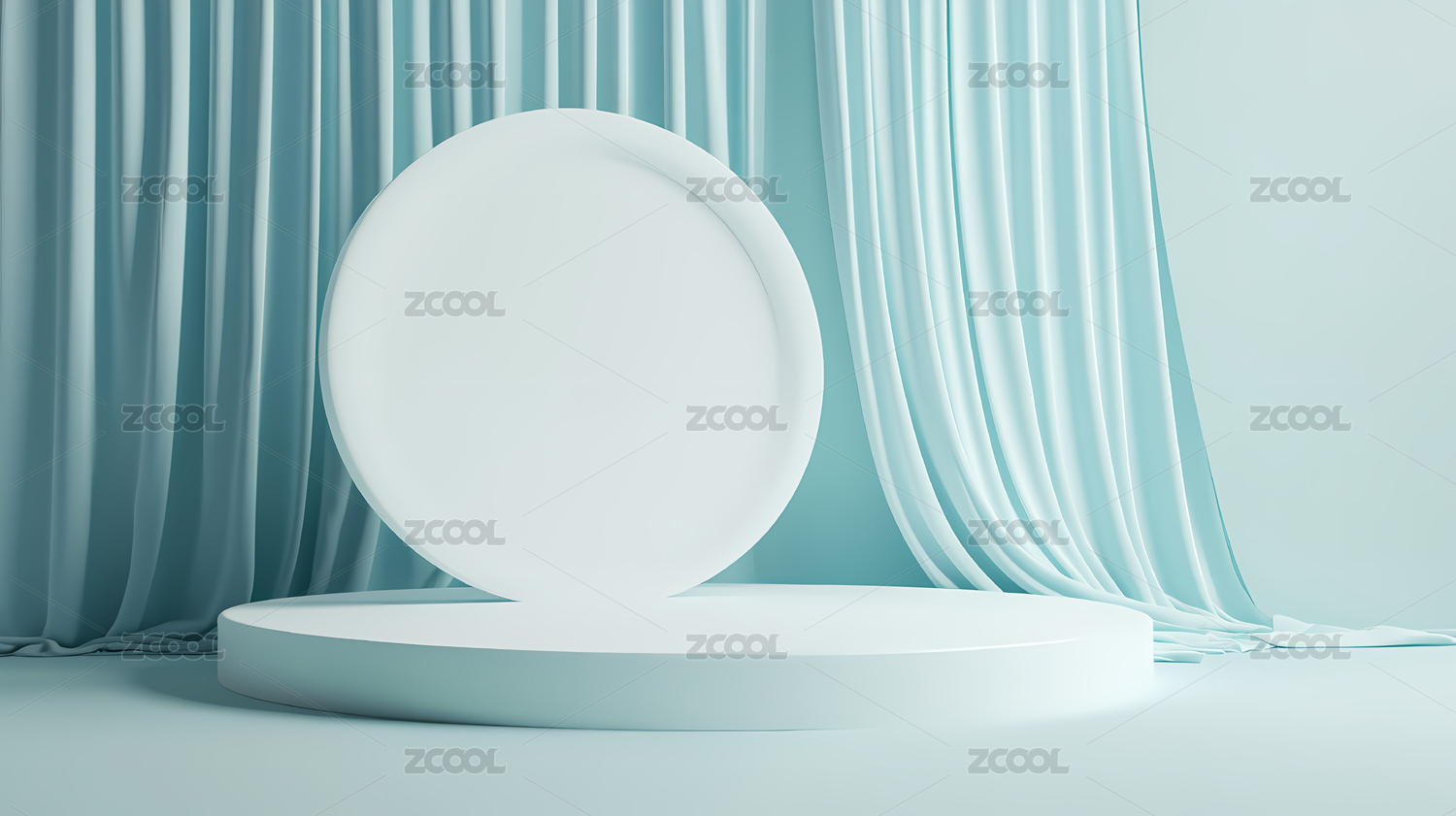 白色圆形展台与柔和窗帘