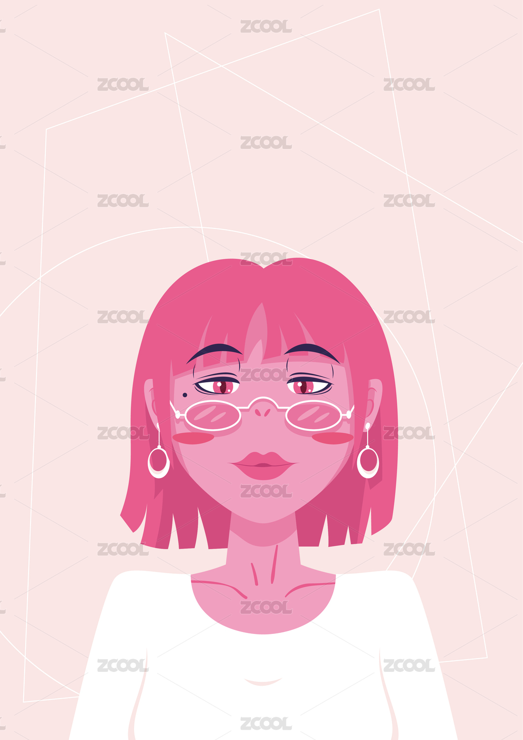 粉黑少女时尚肖像大头照矢量扁平化设计背景