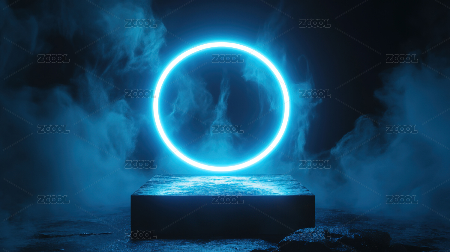 抽象,圆形,舞台,三维图形,未来,设计,光,闪亮的,底座,太空