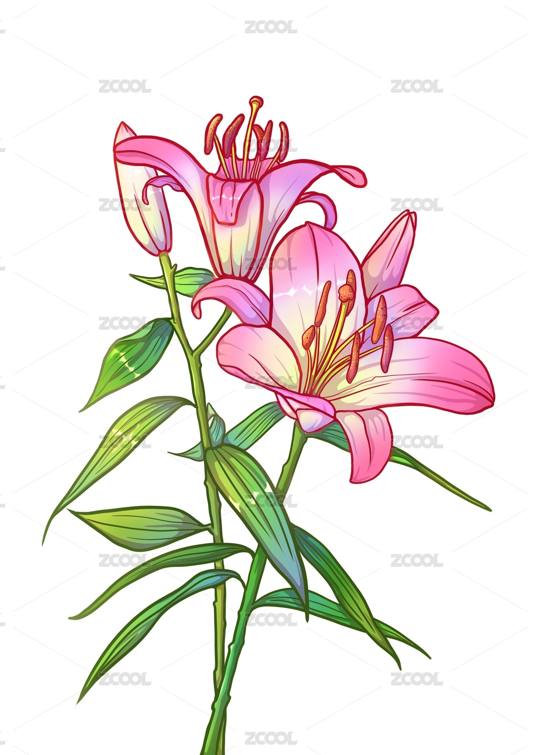 水彩手绘百合花装饰画图案设计花朵花卉素材