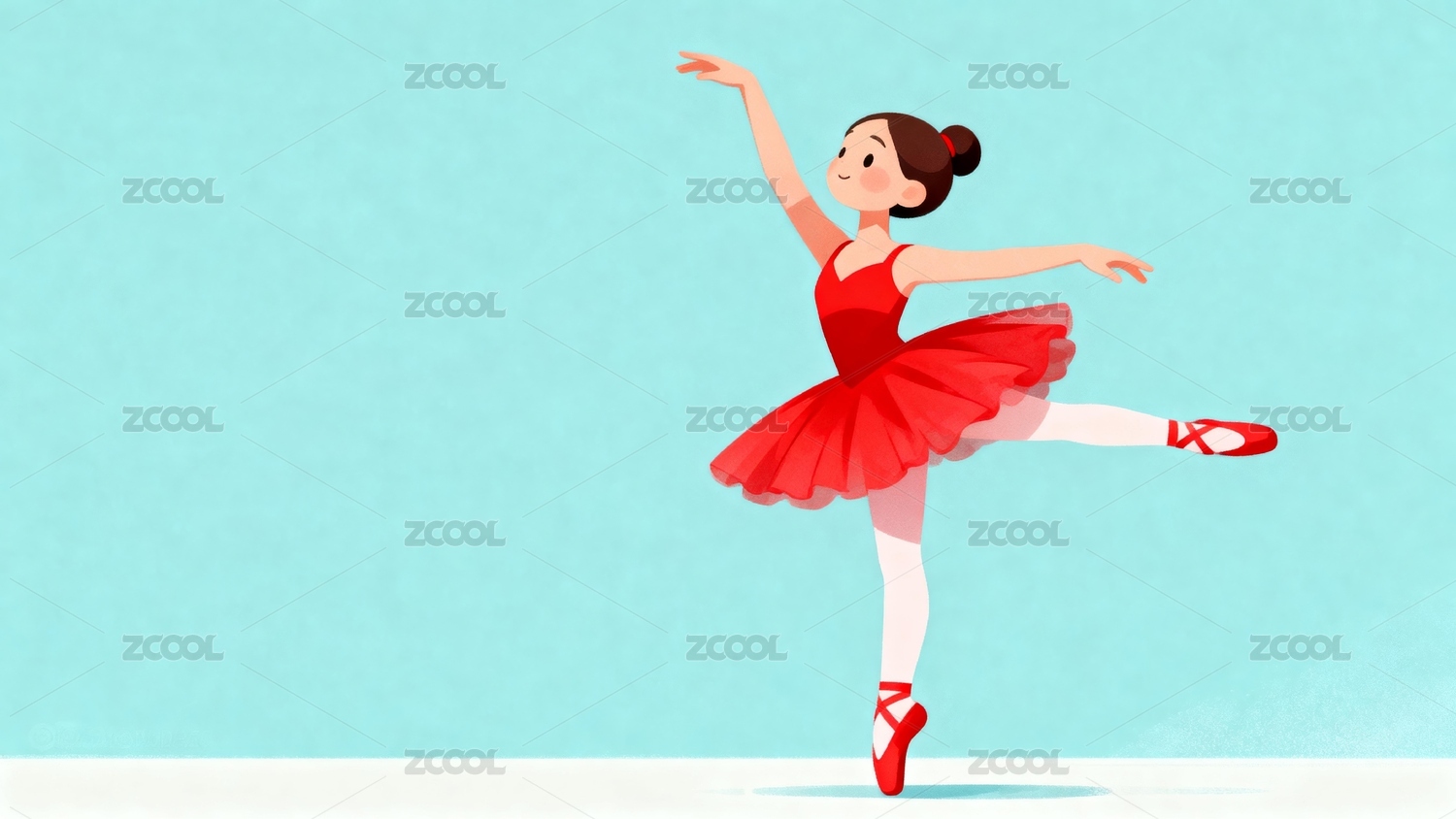 踮起脚尖轻盈跳跃的芭蕾舞者卡通人物插画