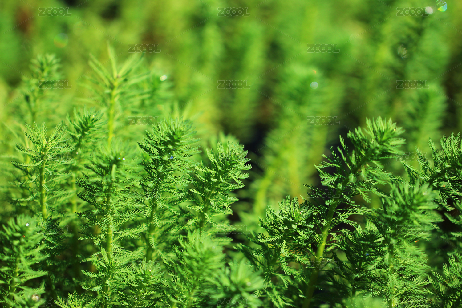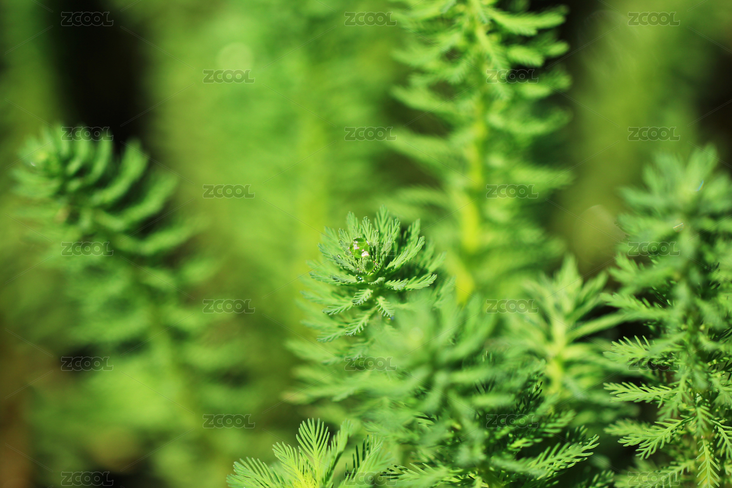 绿色狐尾藻叶片上的水珠