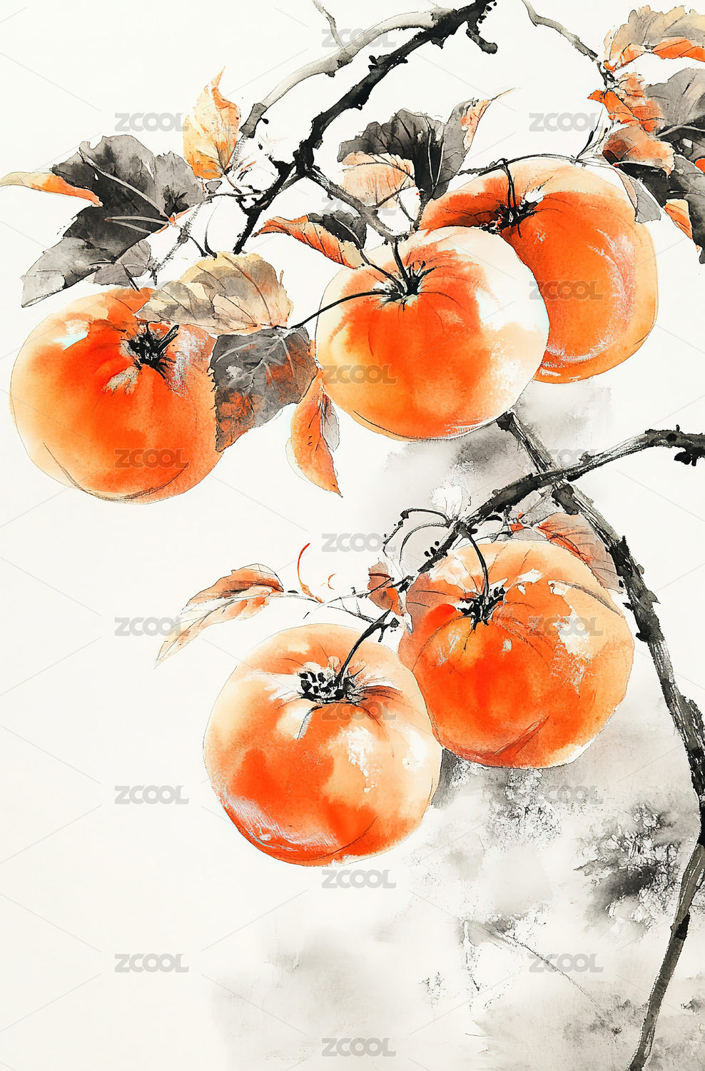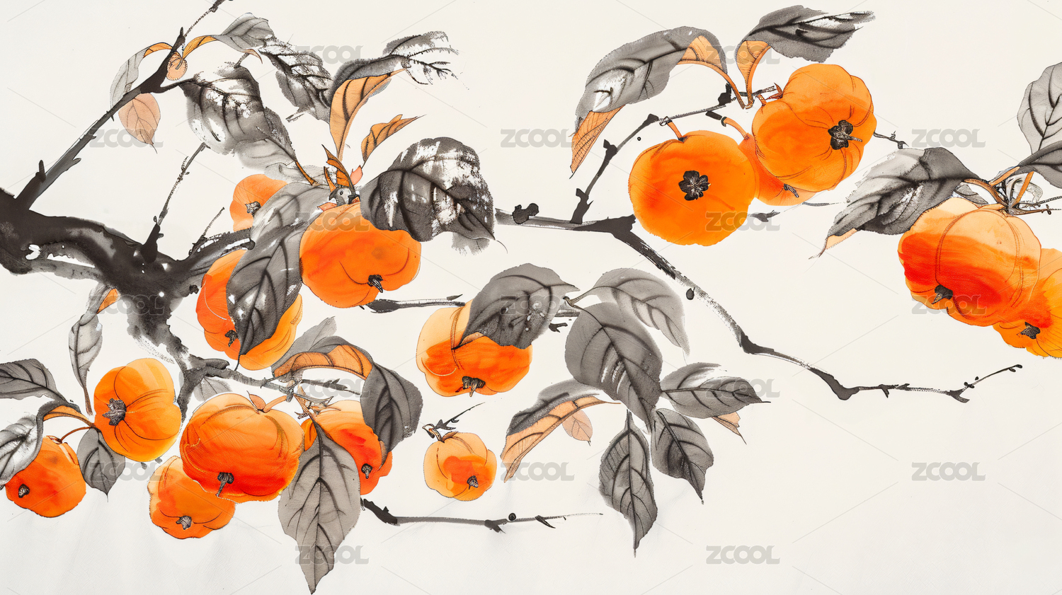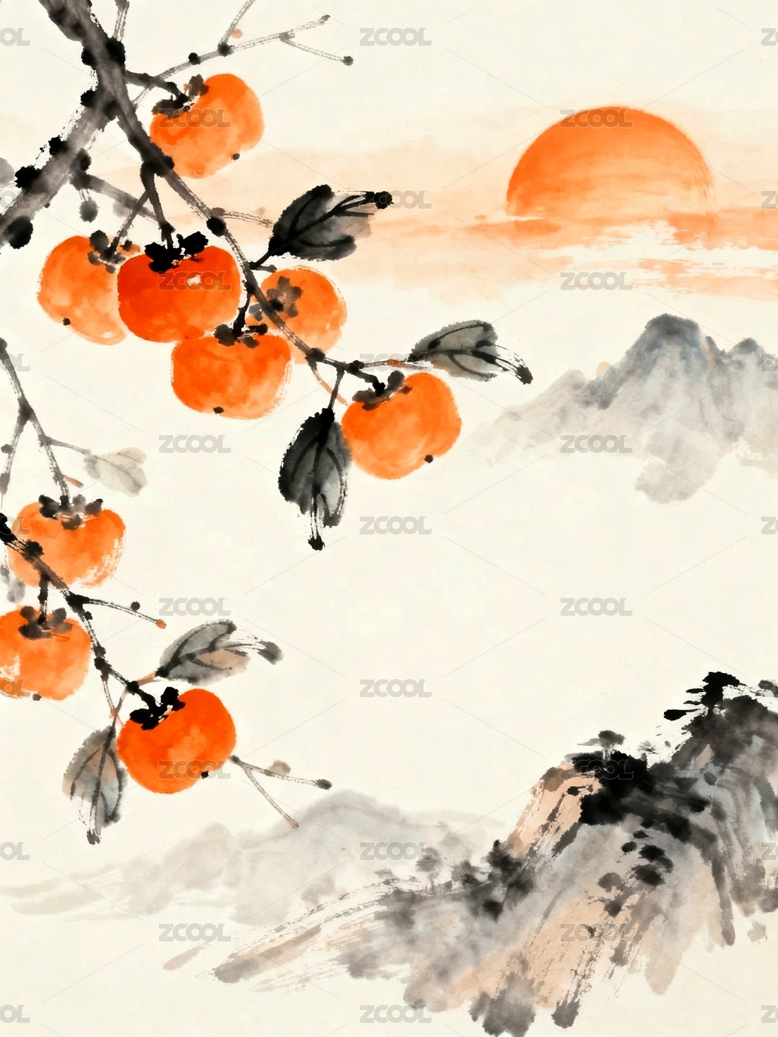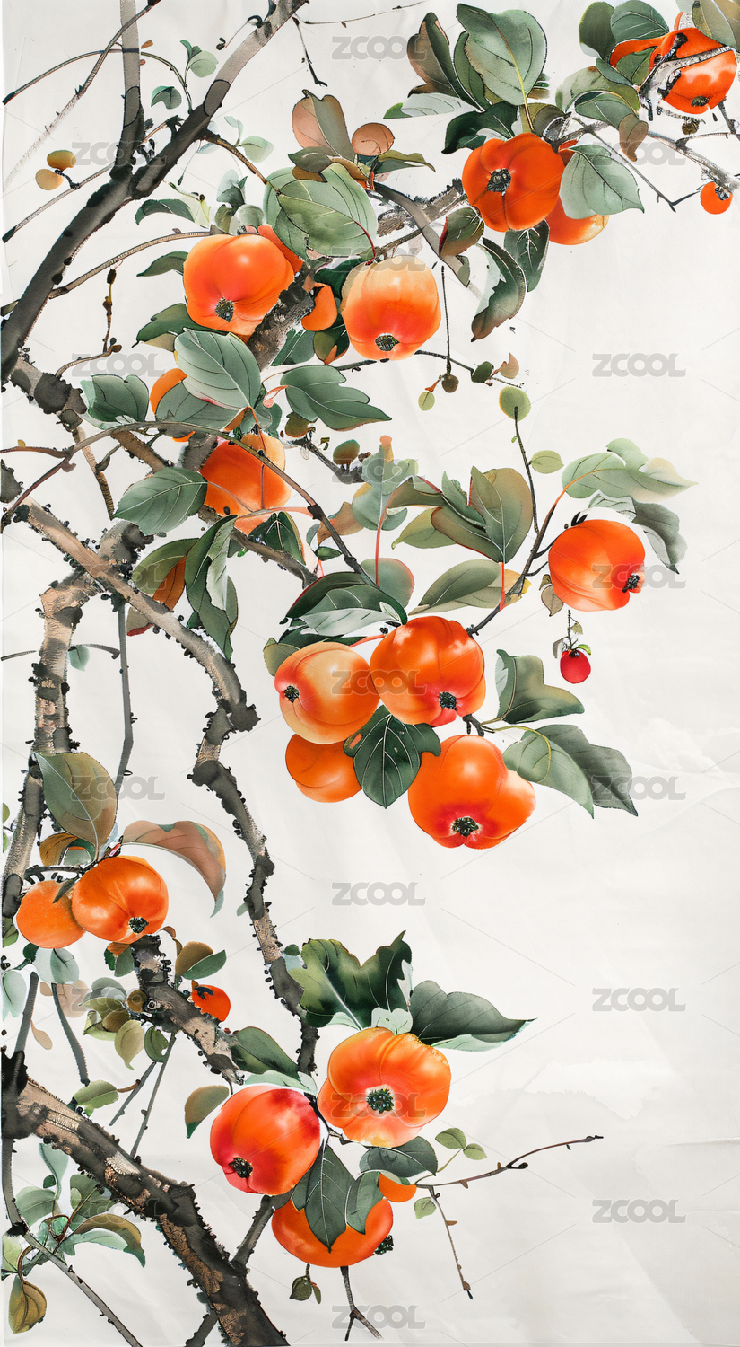 柿子 水墨画 节气 霜降