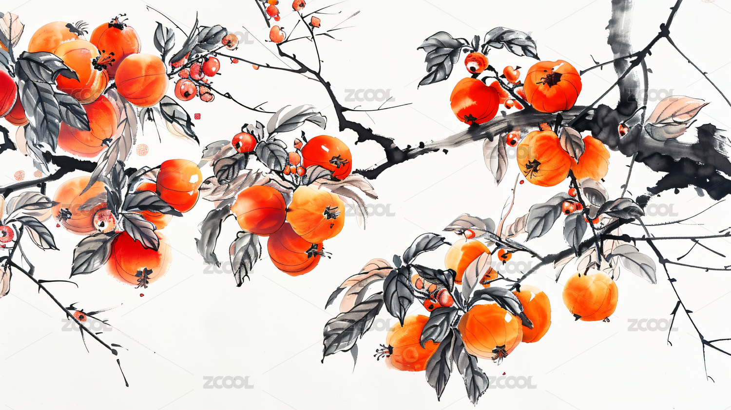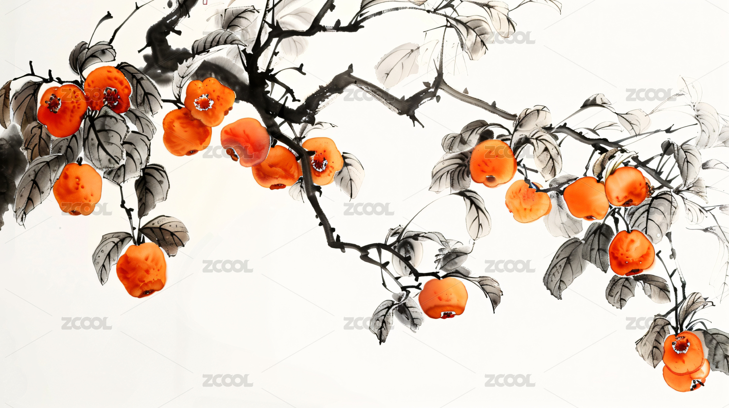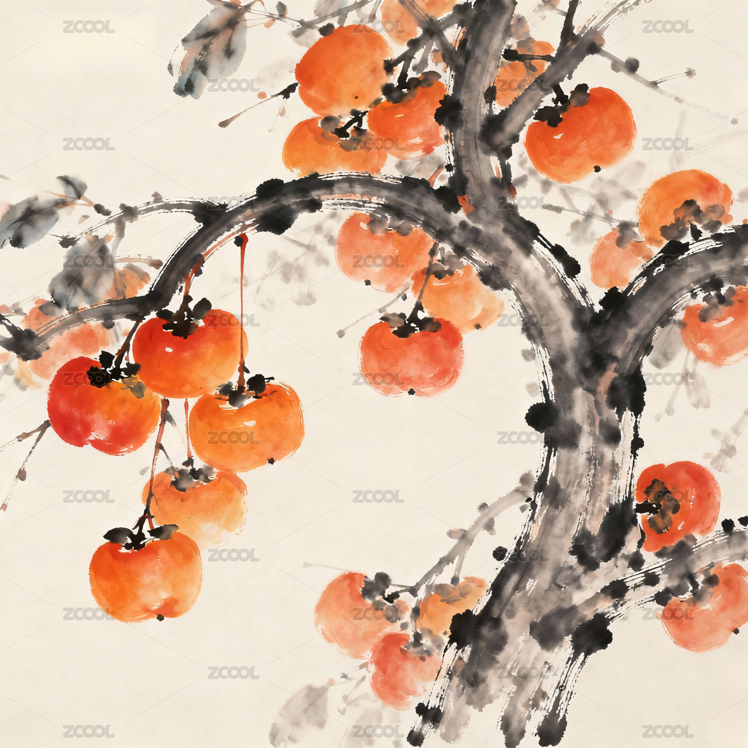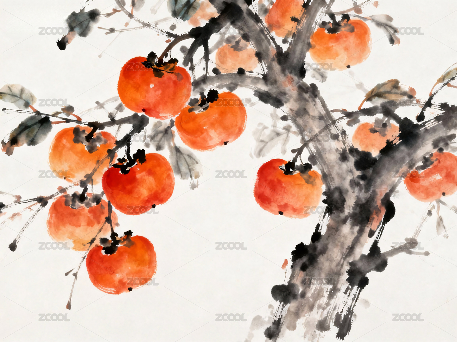 柿子 水墨画 节气 霜降