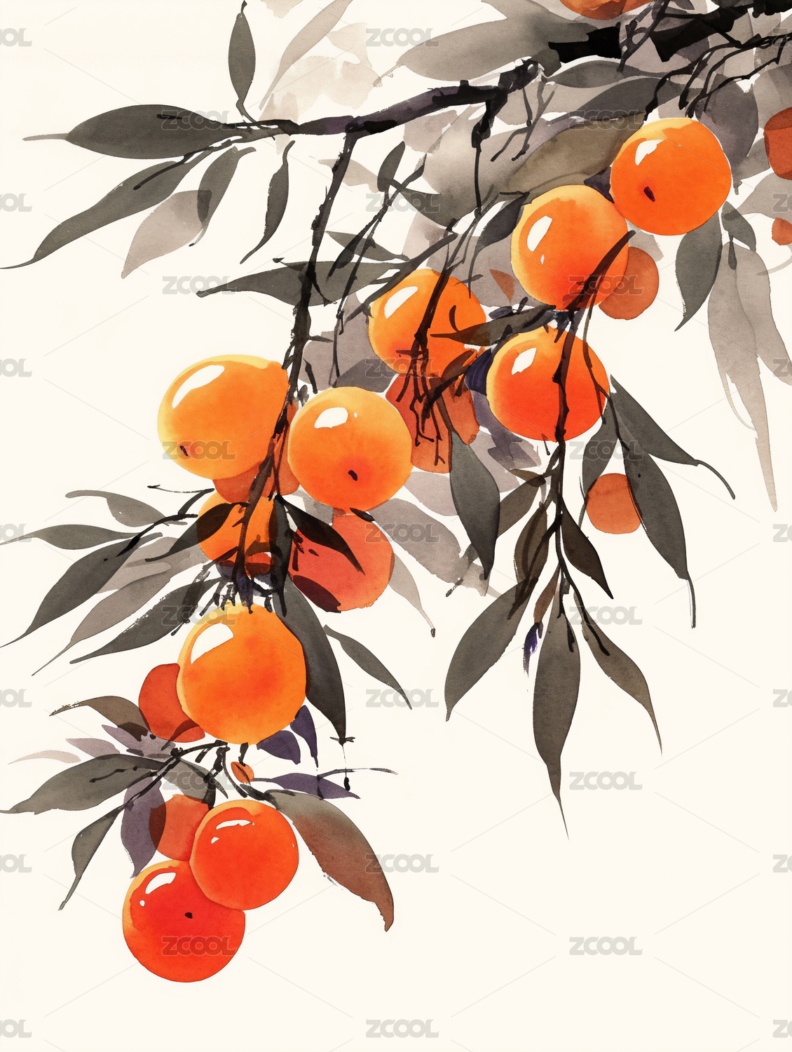 水墨写意橙子枝头秋意浓