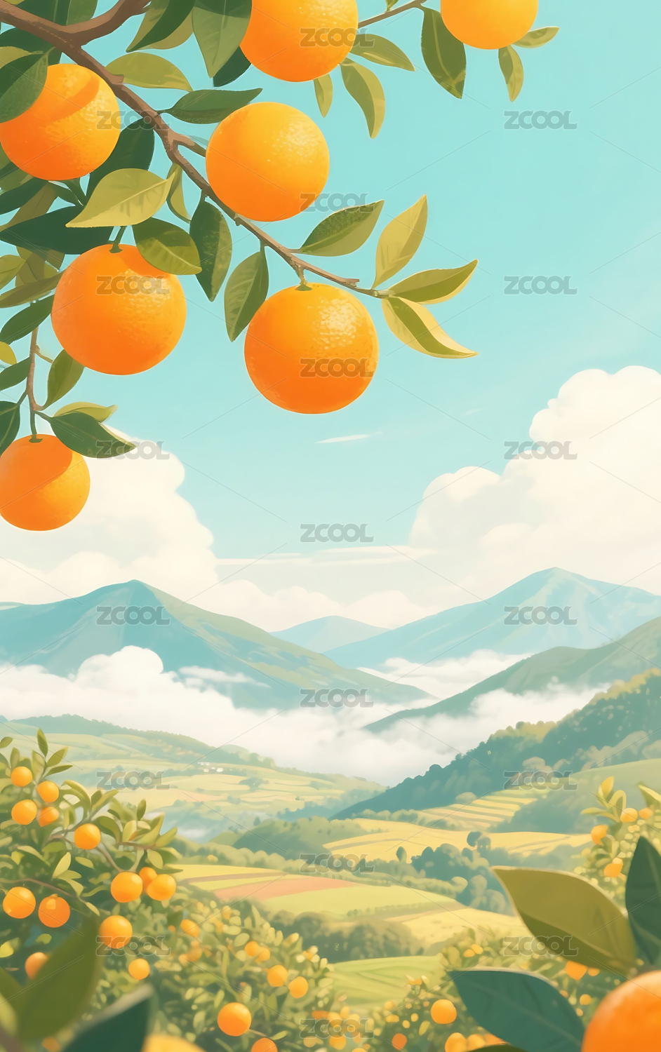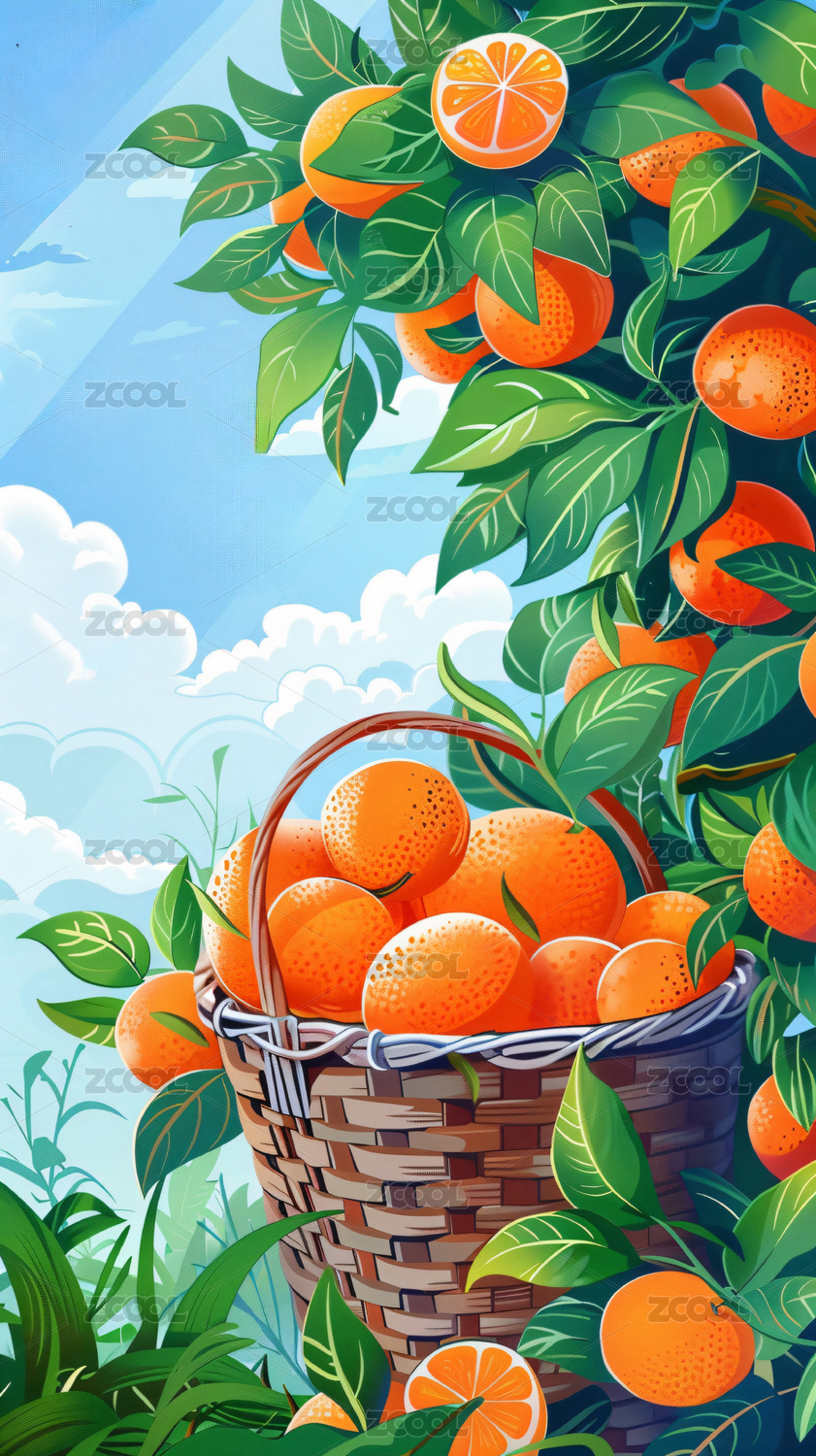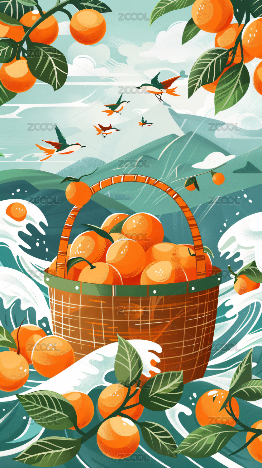 图像,国潮风,插画,AIGCFG,新中式风格,水果,绿色,自然,篮子,收获