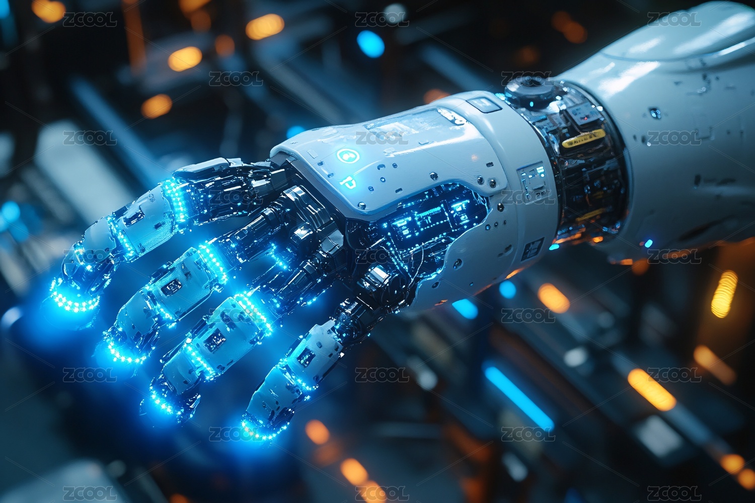 发光的机械手臂特写