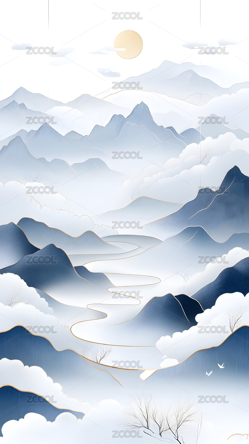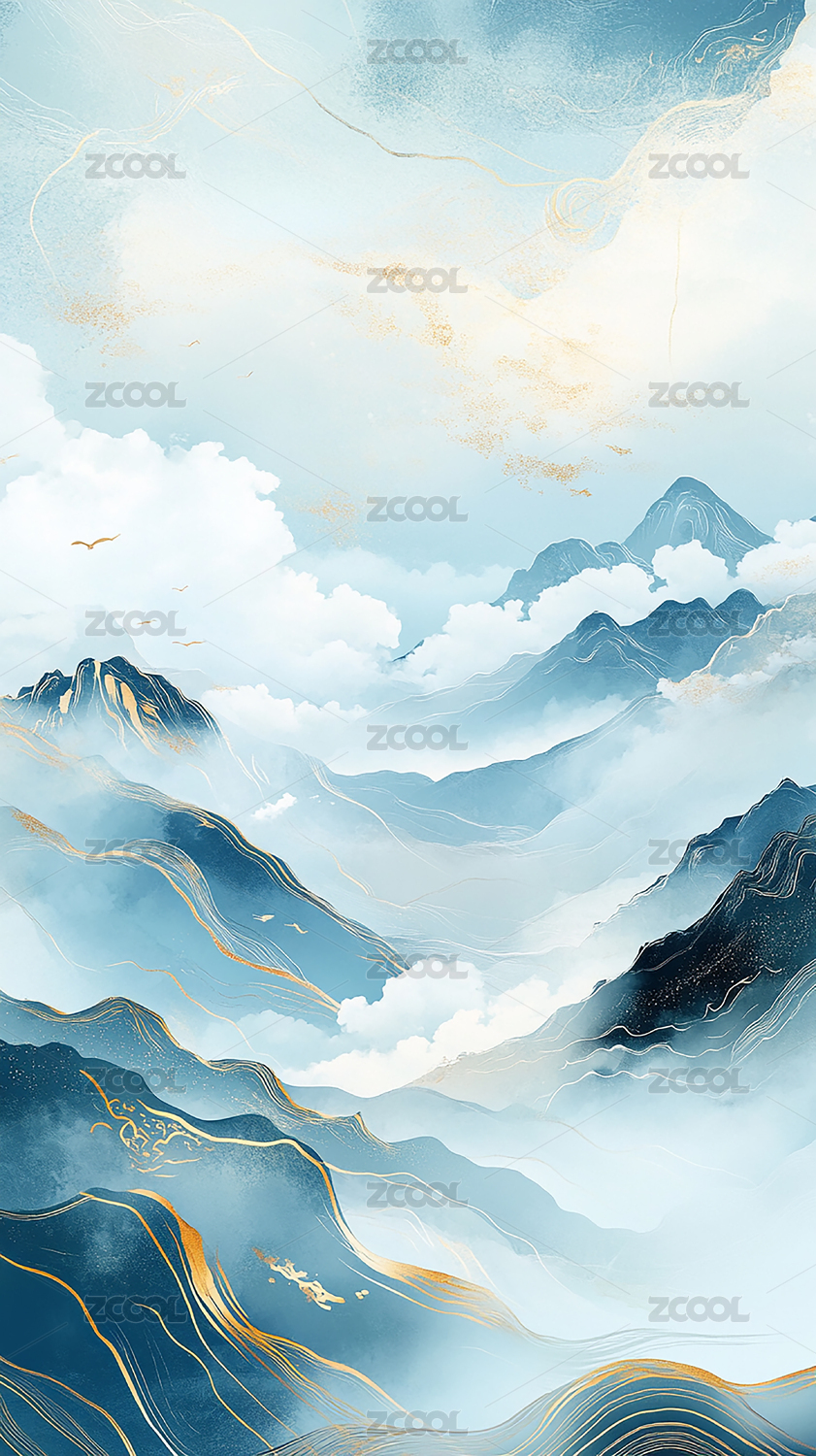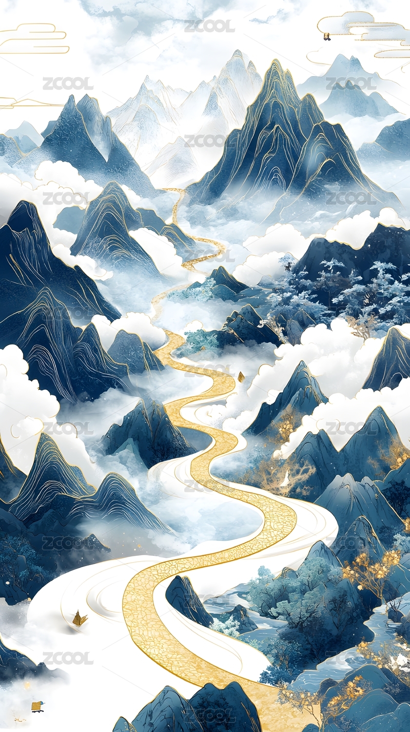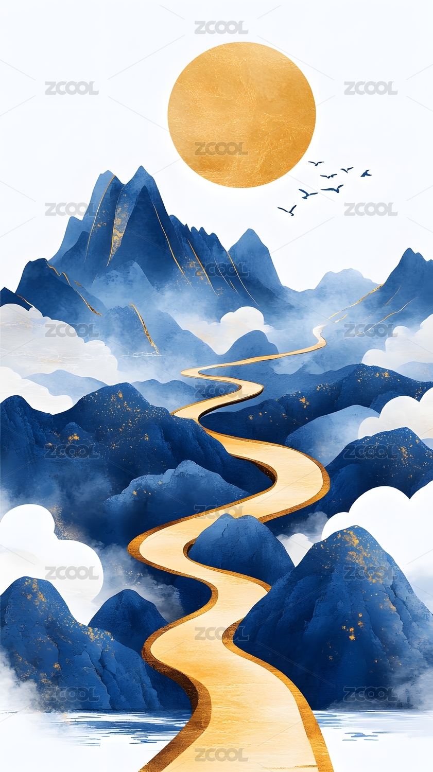 三维, 立体, 3D, 抽象, 背景, 壁纸, 山峦, 河流, 金色, 水彩