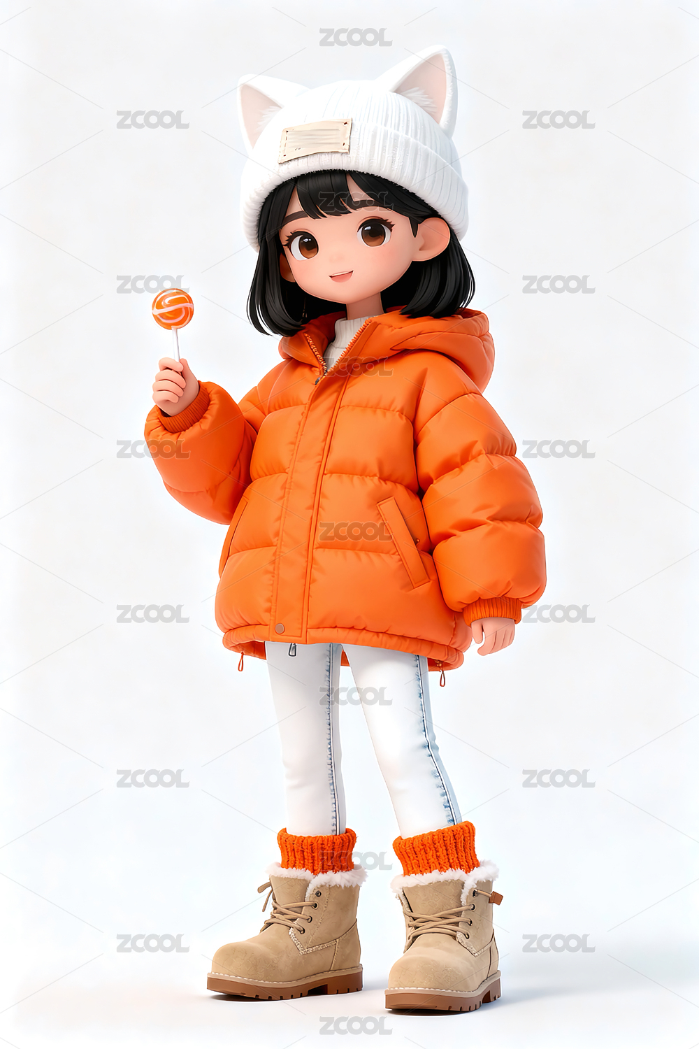 三维, 立体, 3D, 卡通, 女孩, 帽子, 可爱, 插图, 插画, 艺术