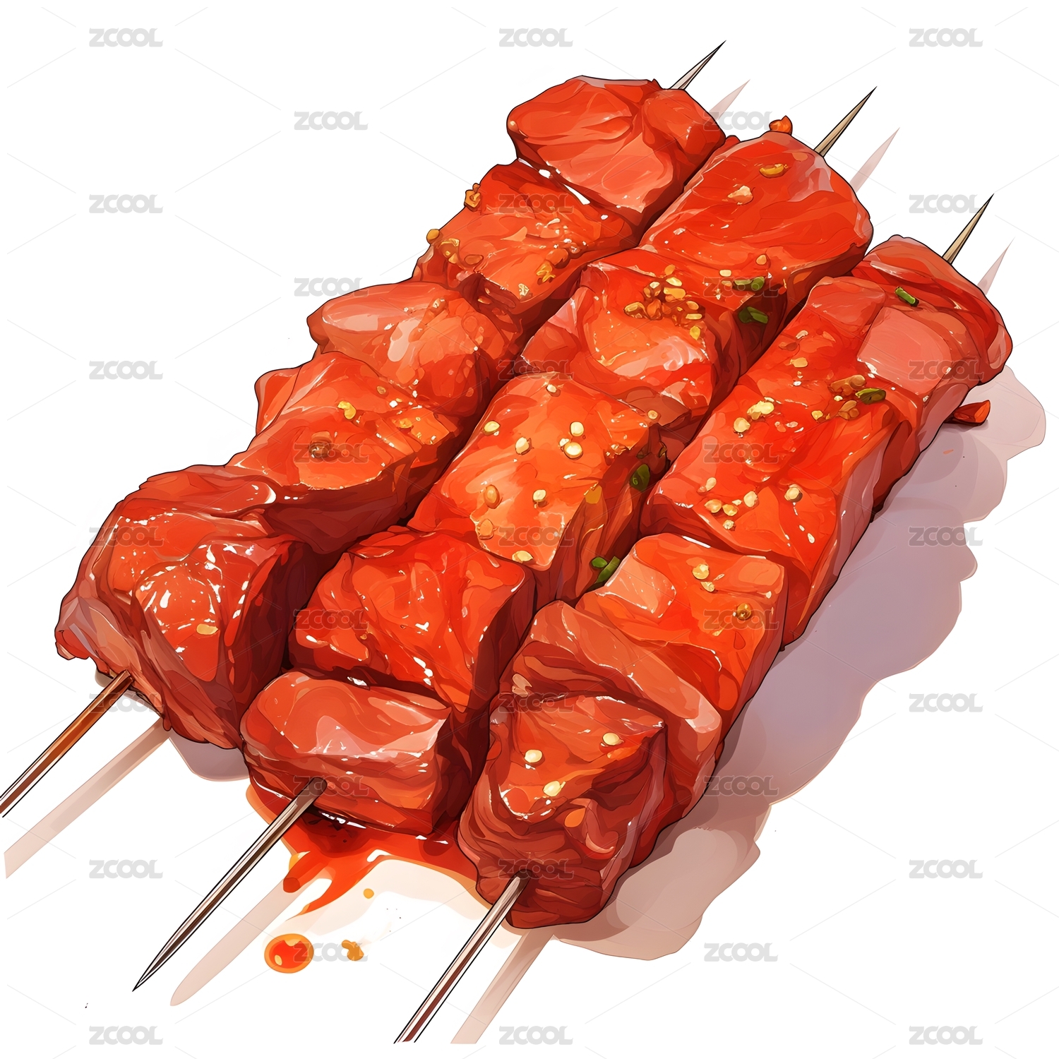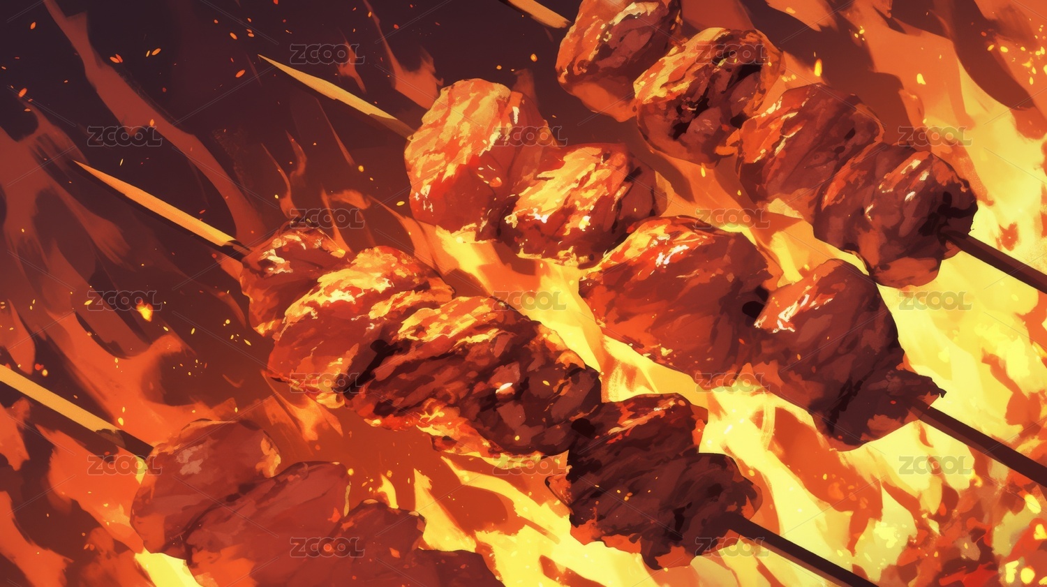 烧烤,烤串,串,撸串,BBQ,烤肉,烤物,美式,庆祝,卡通画
