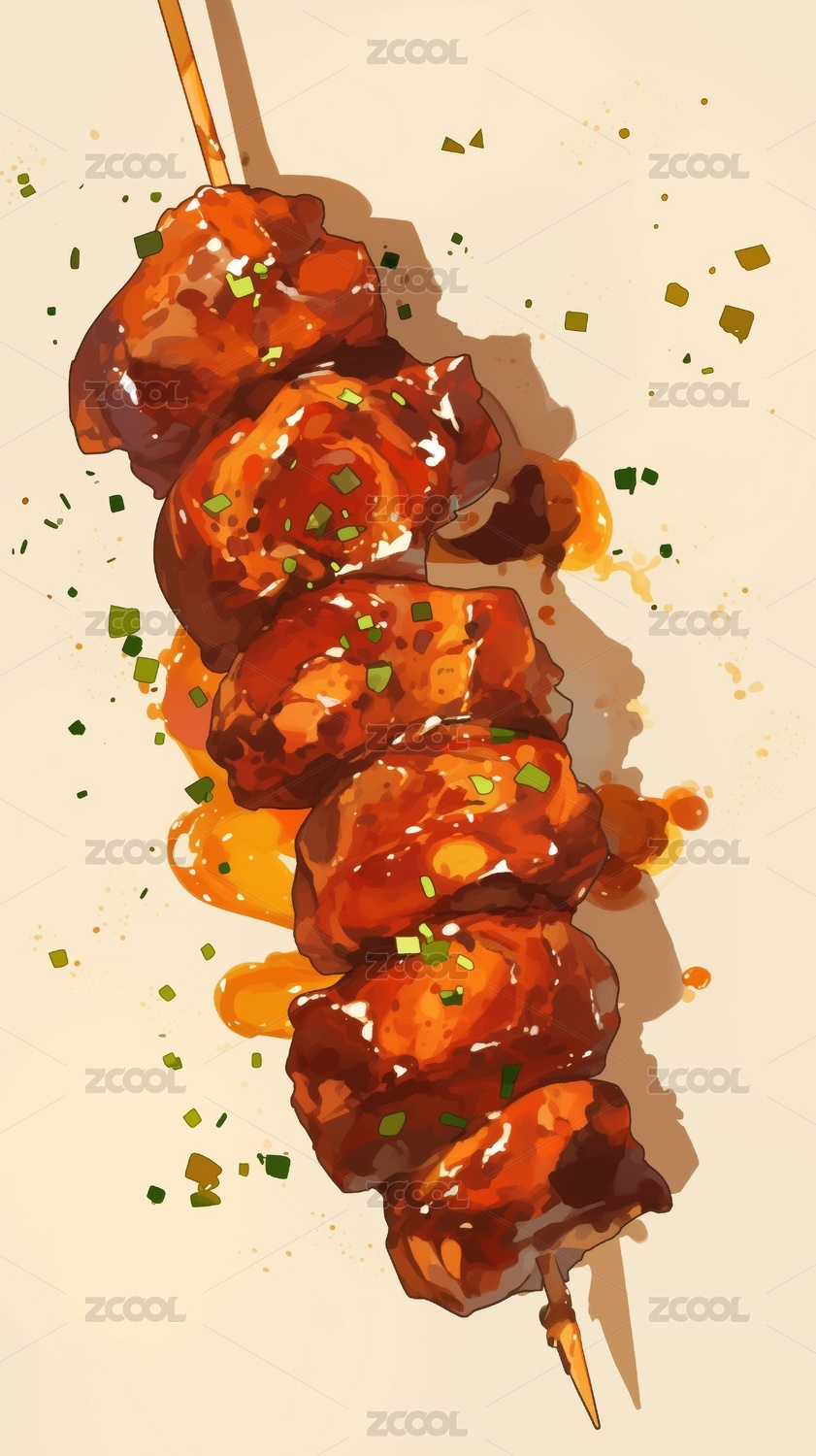 桌面盘中的烤串炸串肉串涮串插画绘画手绘