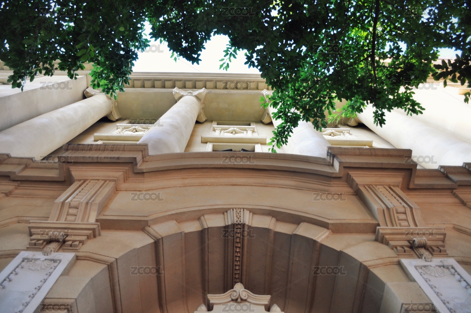 欧洲古老的教堂正面大门和蓝天