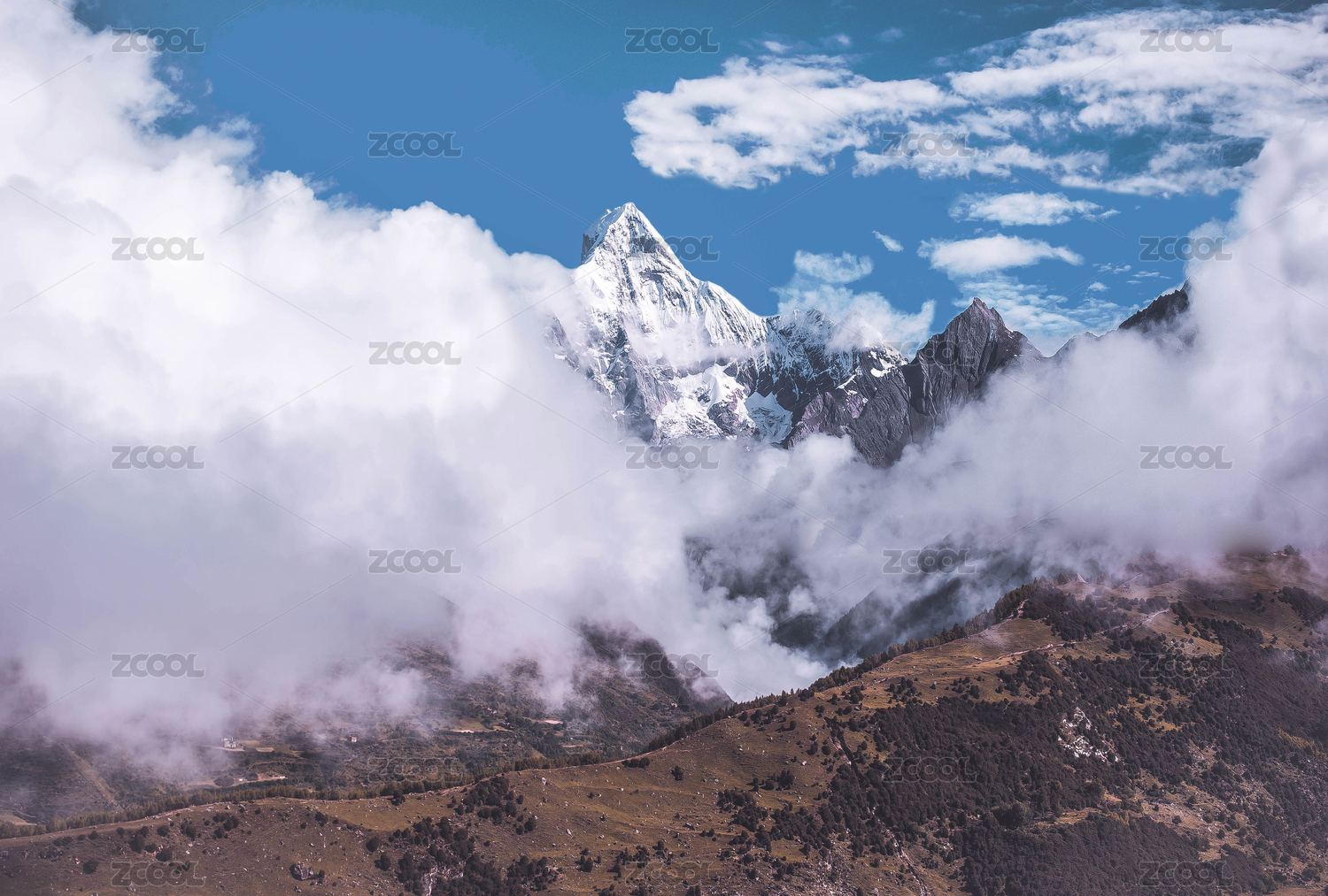 中国西藏聂拉木县318国道边雪山云海