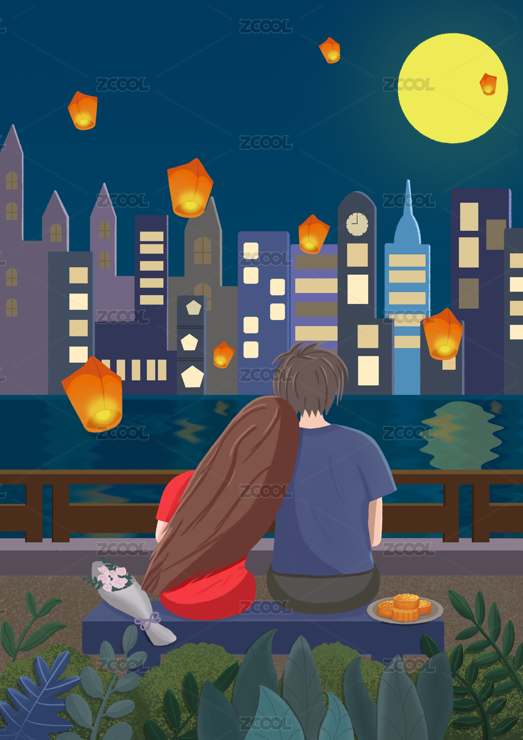 赏月,中秋节,月圆,传统,习俗,吃月饼,节日,城市,夜景,家人