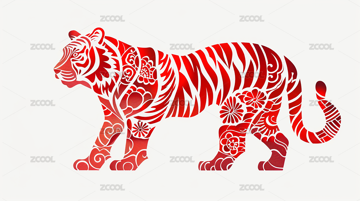 红色喜庆老虎 十二生肖 套图