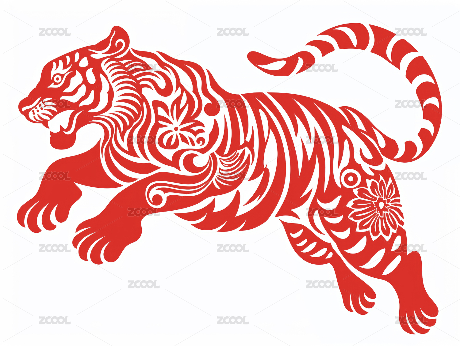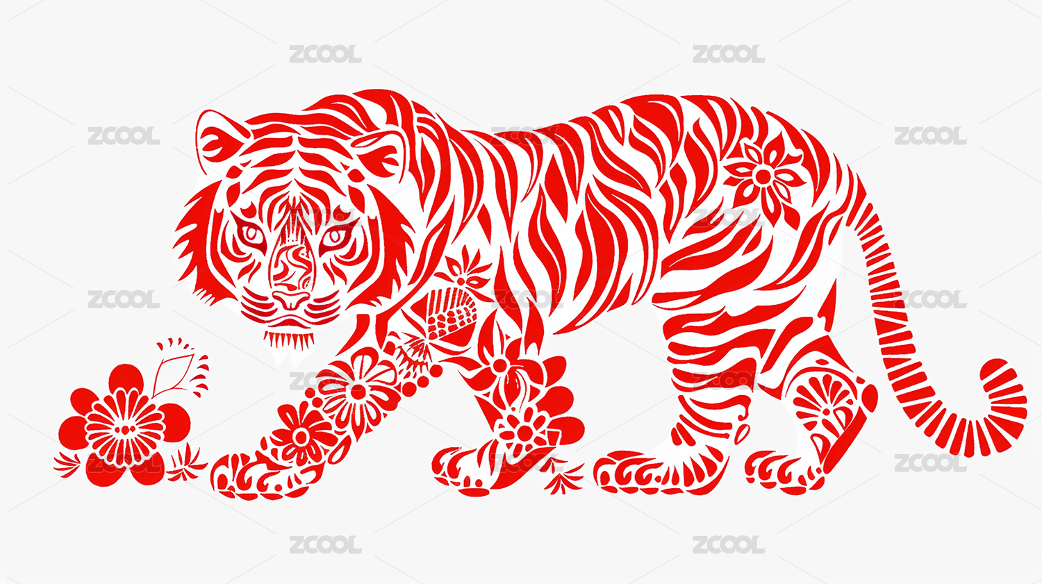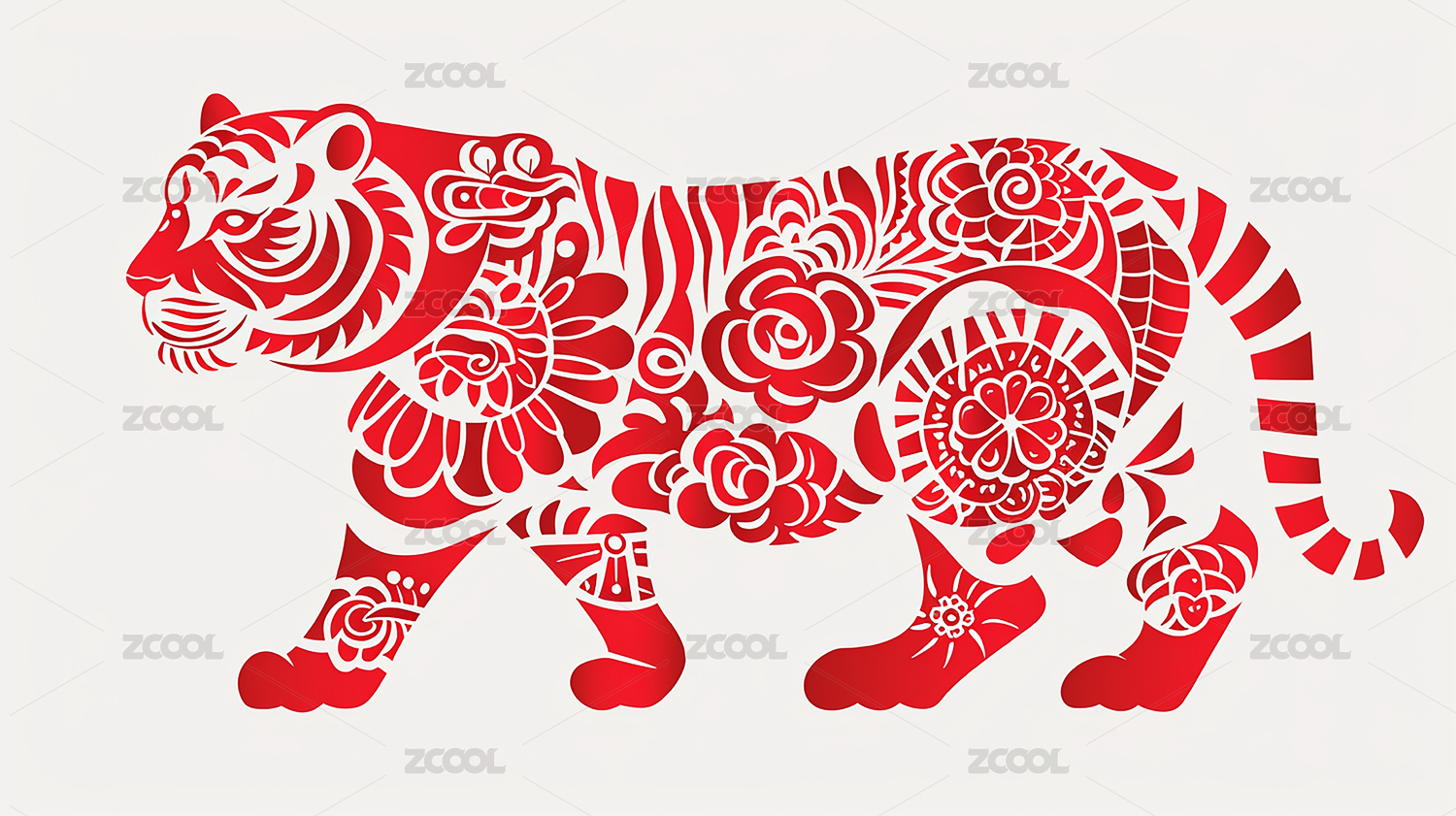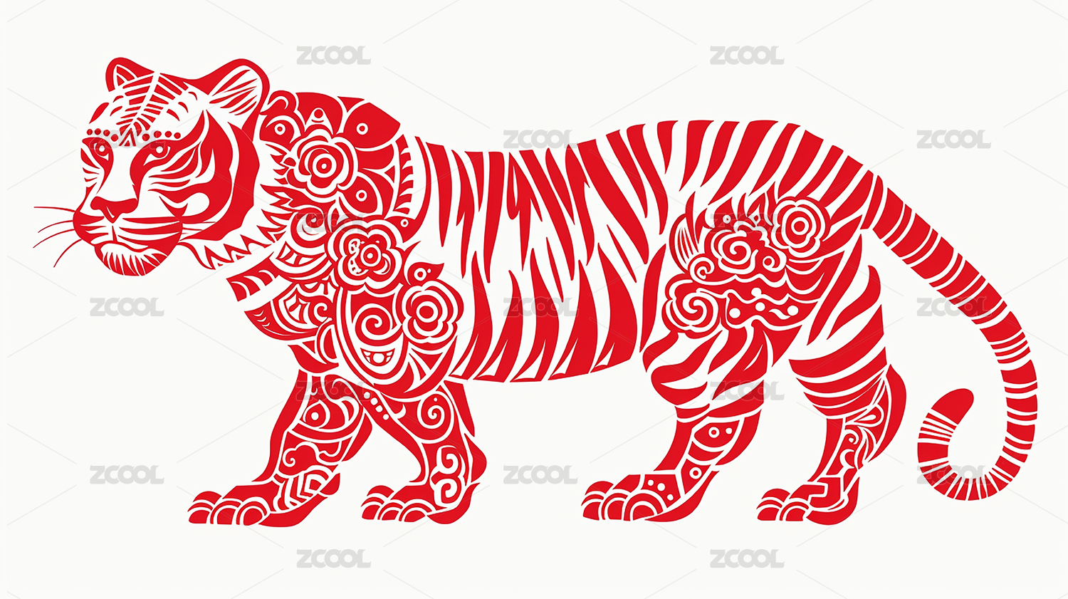 红色剪纸老虎图案