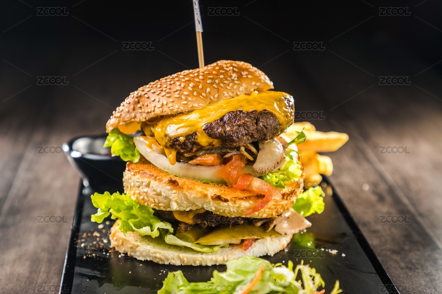 西式餐饮牛肉双层汉堡