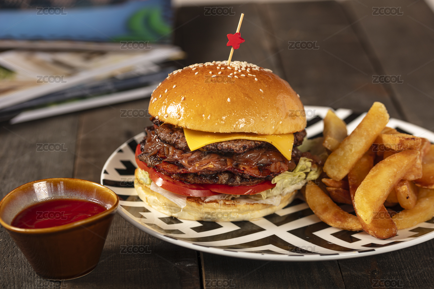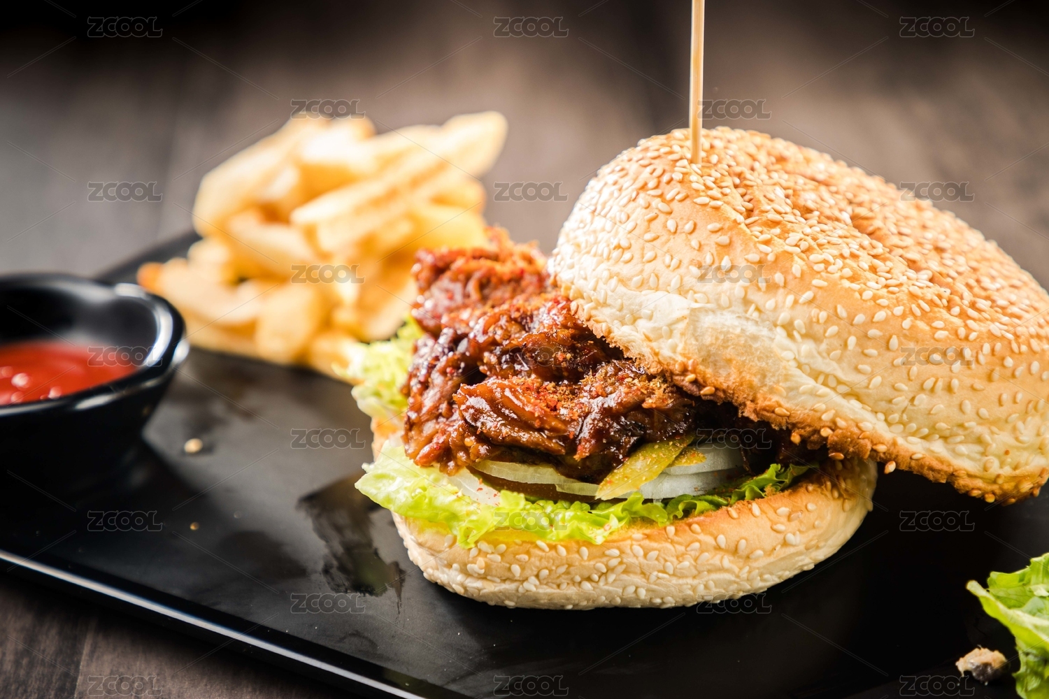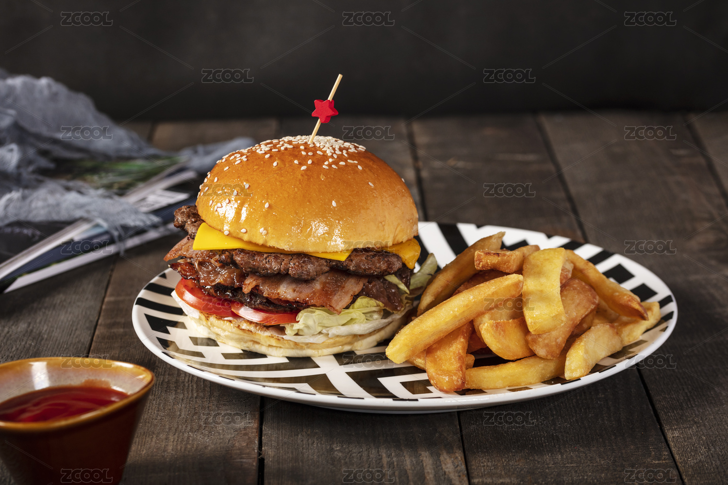 美食,美味,西餐,汉堡,薯条,牛肉汉堡,番茄酱,猪肉汉堡,培根汉堡,汉堡包