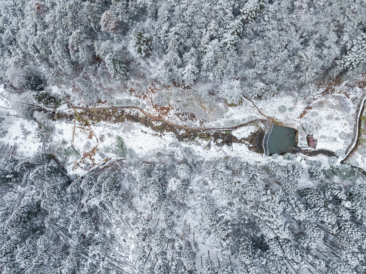 航拍庐山景区雪景