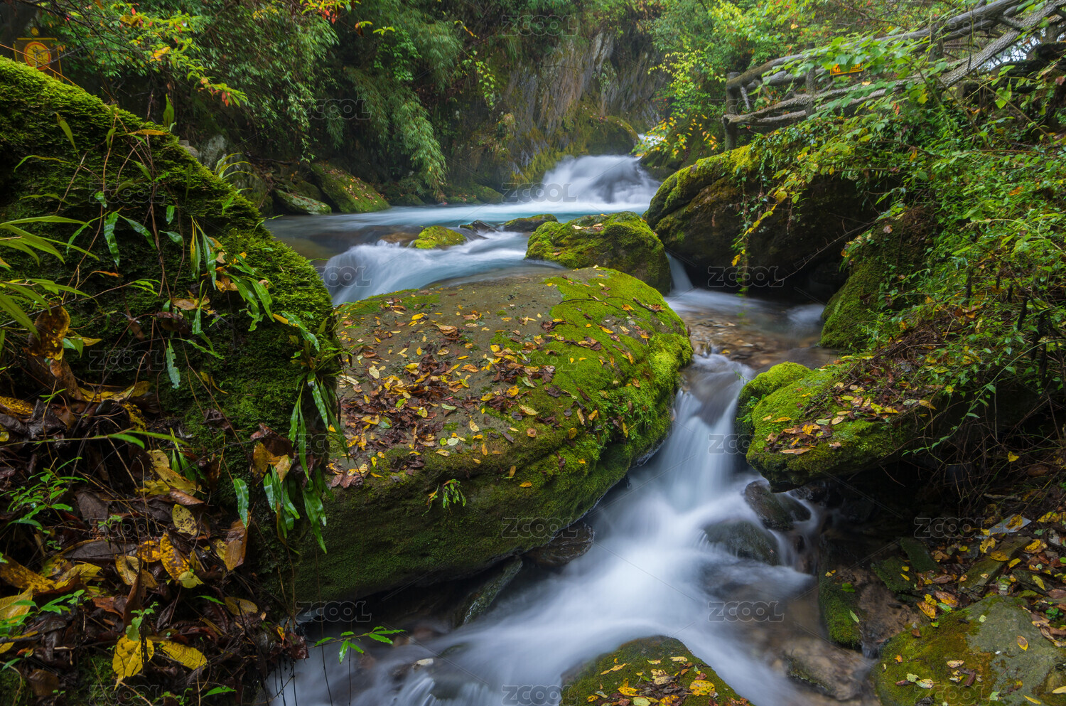 湖北,神农架,林区,木鱼镇,香溪源,风景区,秋天,深秋,瀑布,小溪