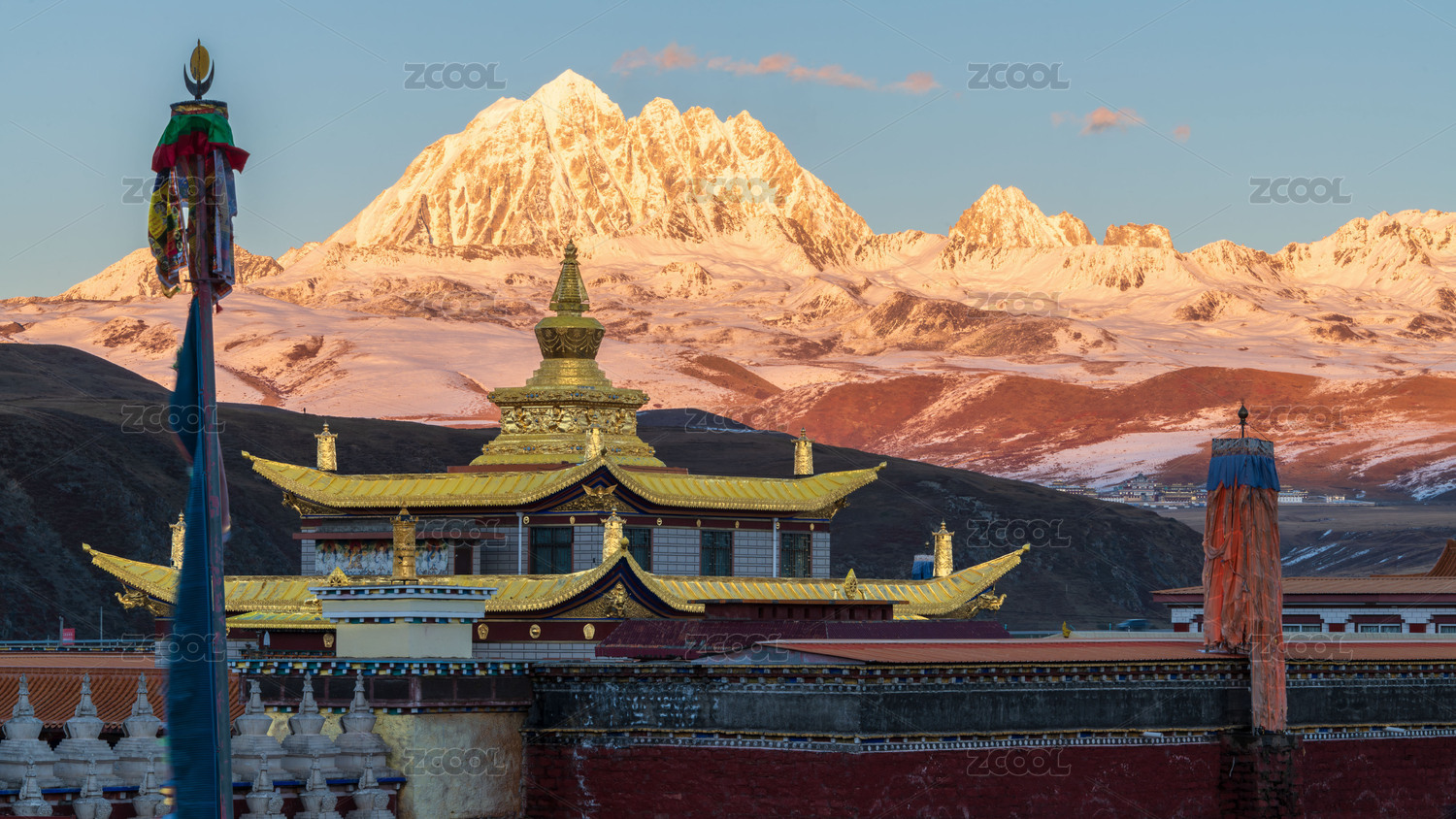 塔公寺和雅拉神山的日落