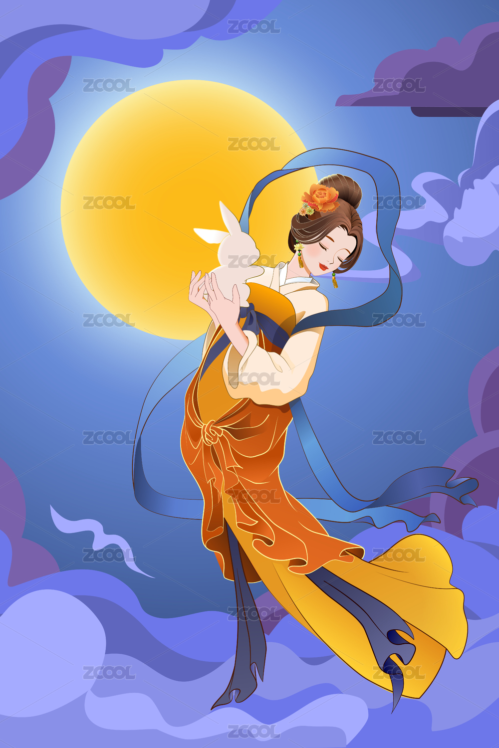 中秋节中国传统文化嫦娥奔月典故矢量插画